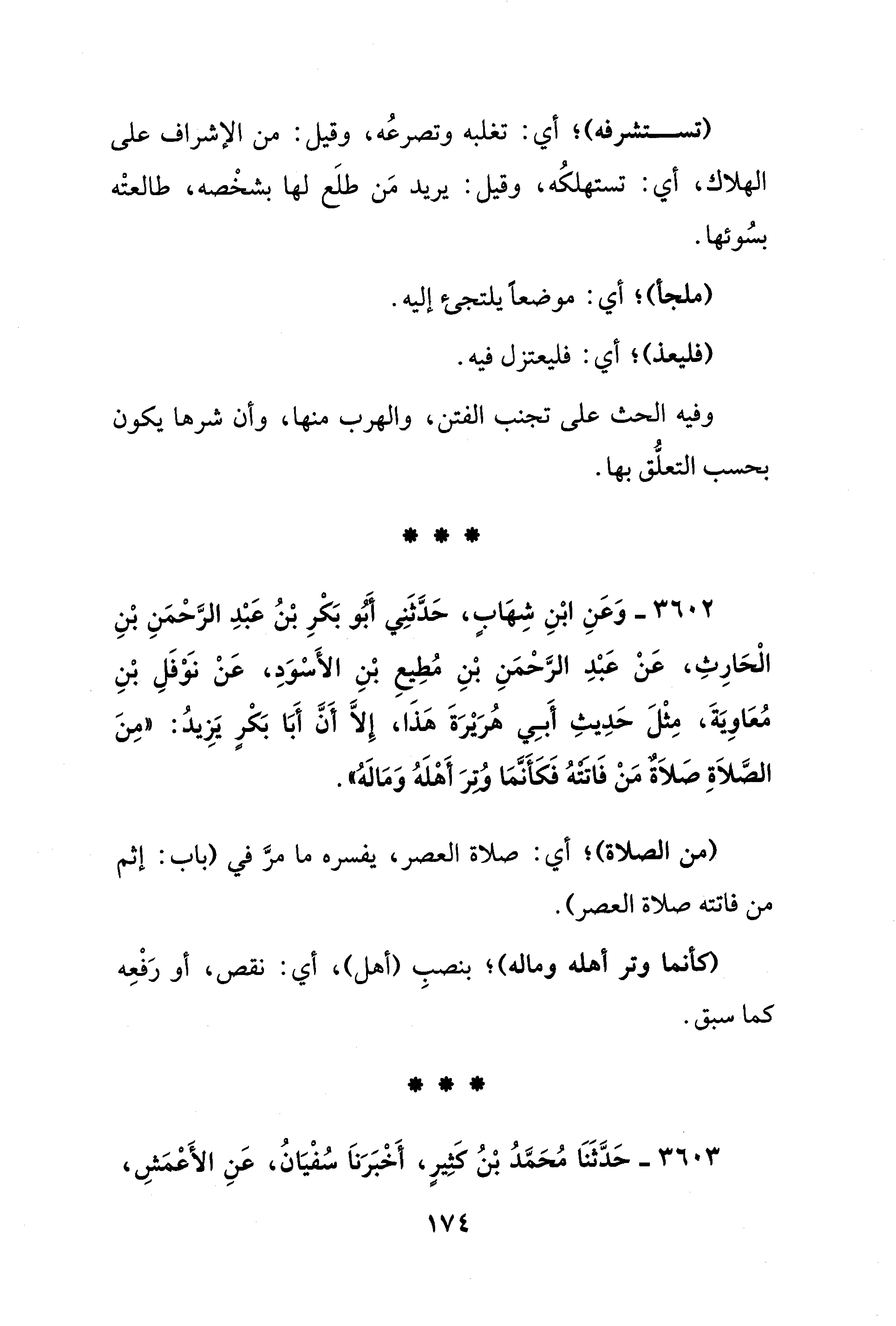 3602 - وَعَنِ ابْنِ شِهَابٍ، حَدَّثَنِي أَبُو بَكْرِ بْنُ عَبْدِ الرَّحْمَنِ بْنِ الْحَارِثِ، عَنْ عَبْدِ الرَّحْمَنِ بْنِ مُطِيعِ بْنِ الأَسْوَدِ، عَنْ نَوْفَلِ بْنِ مُعَاوِيَةَ، مِثْلَ حَدِيثِ أَبِي هُرَيْرَةَ هَذَا، إلا أَنَّ أَبَا بَكْرٍ يَزِيدُ: "مِنَ الصَّلَاةِ صَلَاةٌ مَنْ فَاتَتْهُ فَكَأَنَّمَا وُتِرَ أَهْلَهُ وَمَالَهُ".