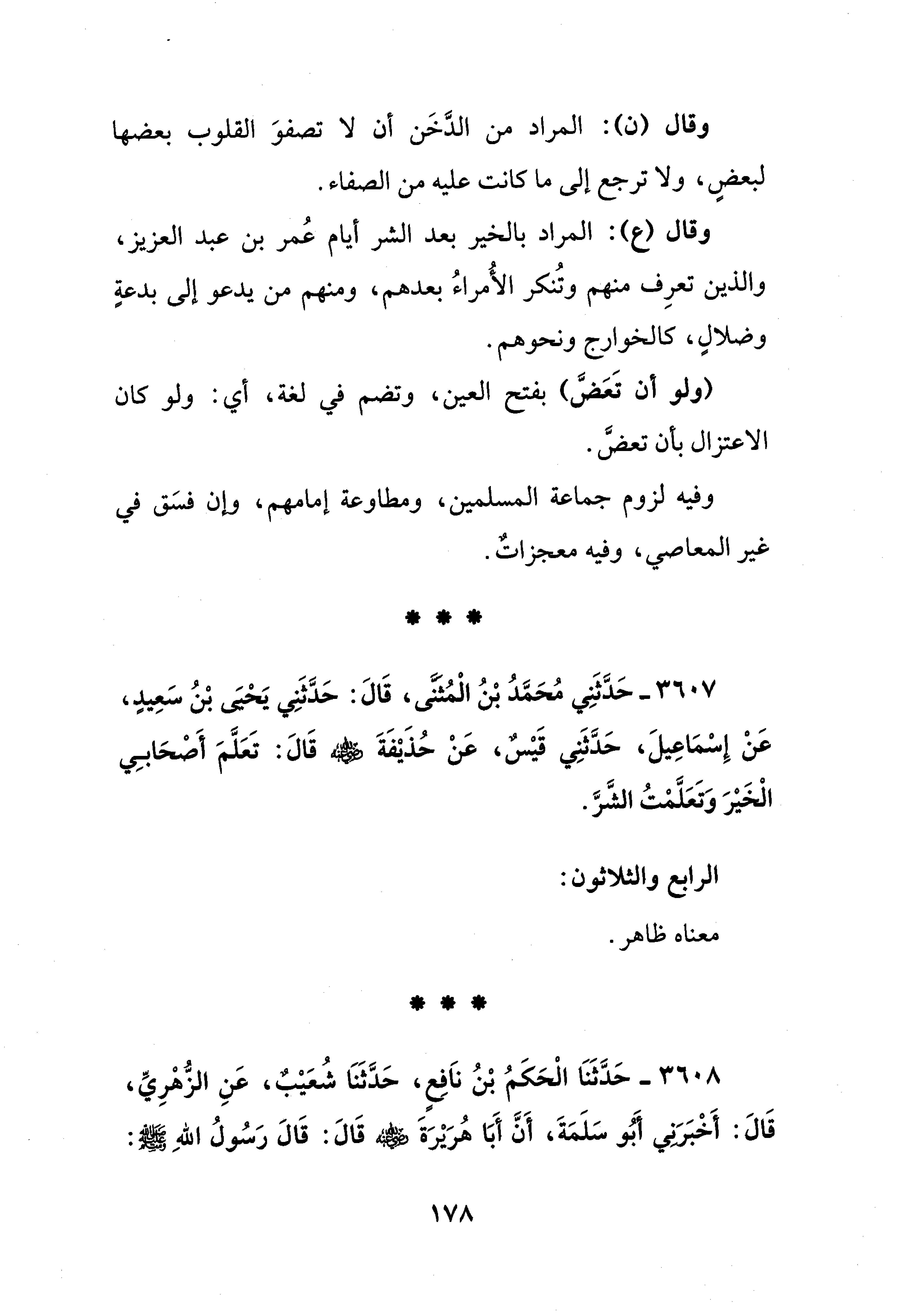 وقال (ع): المراد بالخير بعد الشر أيّام عُمر بن عبد العزيز، والذين تعرِف منهم وتُنكر الأُمراءُ بعدهم، ومنهم من يدعو إلى بدعةٍ وضلالٍ، كالخوارج ونحوهم.
