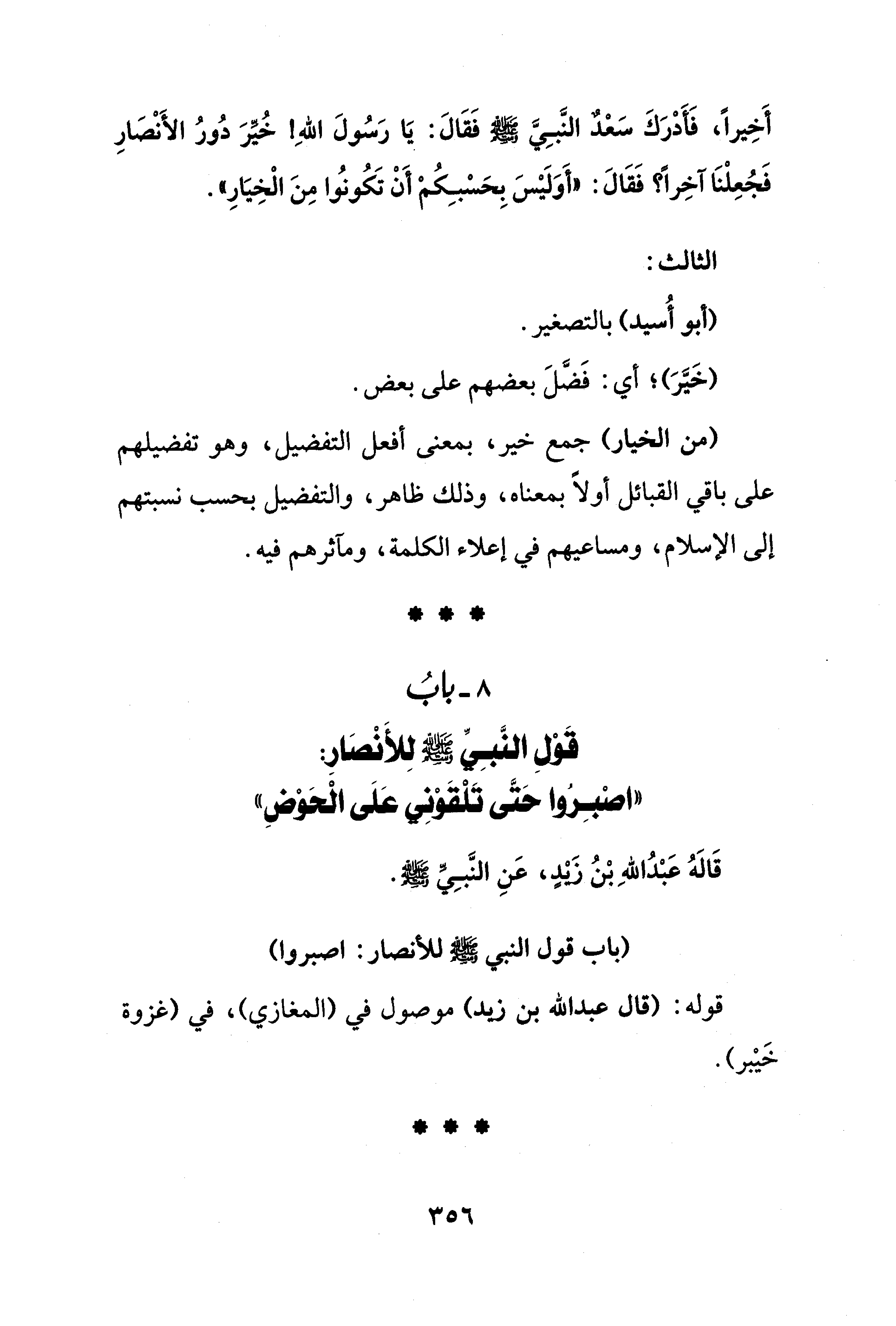 8 - بابُ قَوْل النَّبِيِّ - صلى الله عليه وسلم - لِلأَنْصَارِ: "اصْبِرُوا حَتَّى تَلْقَوْنِي عَلَى الْحَوْضِ"