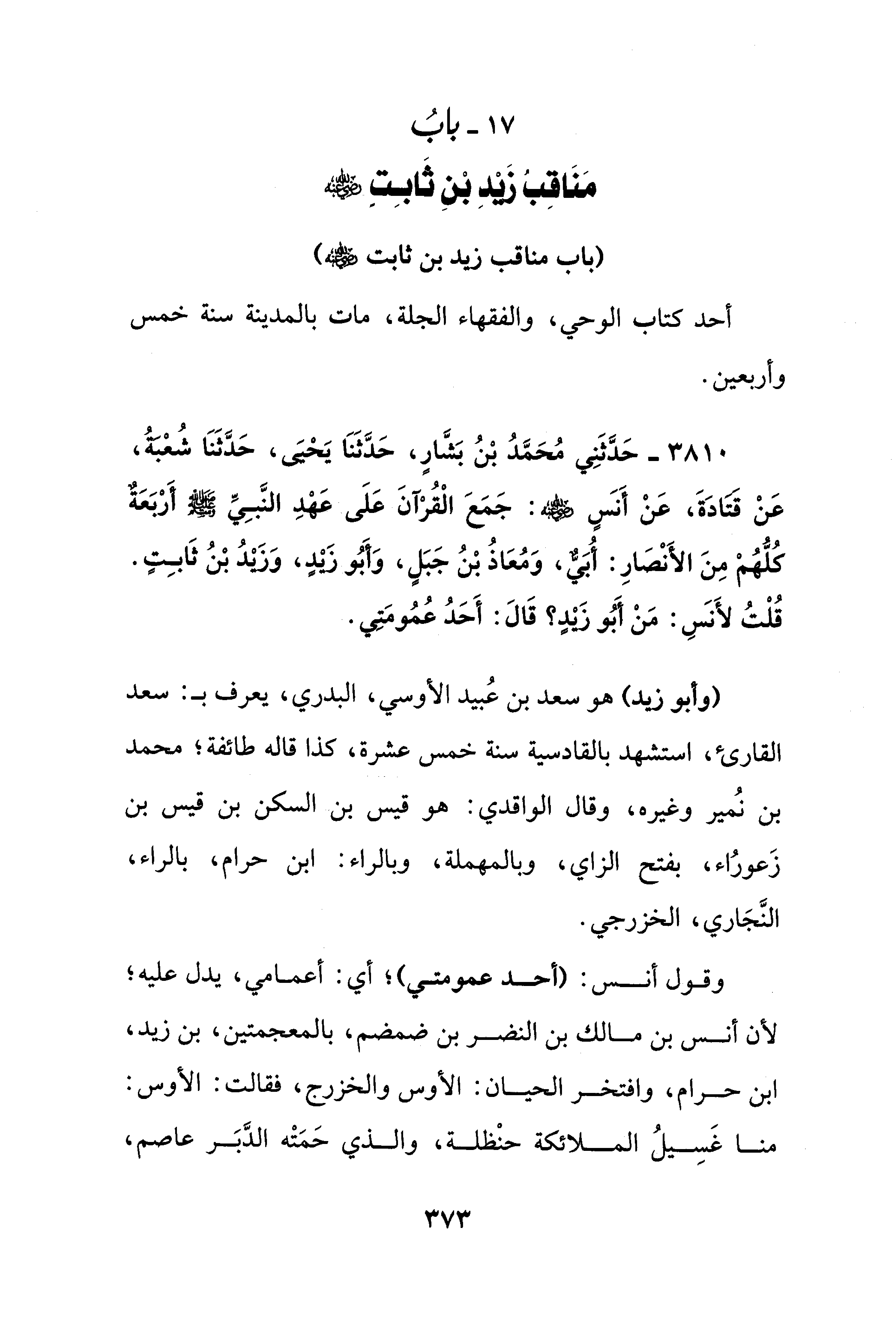 17 - بابُ مَنَاقِبُ زَيْدِ بنِ ثَابِتٍ - رضي الله عنه -
