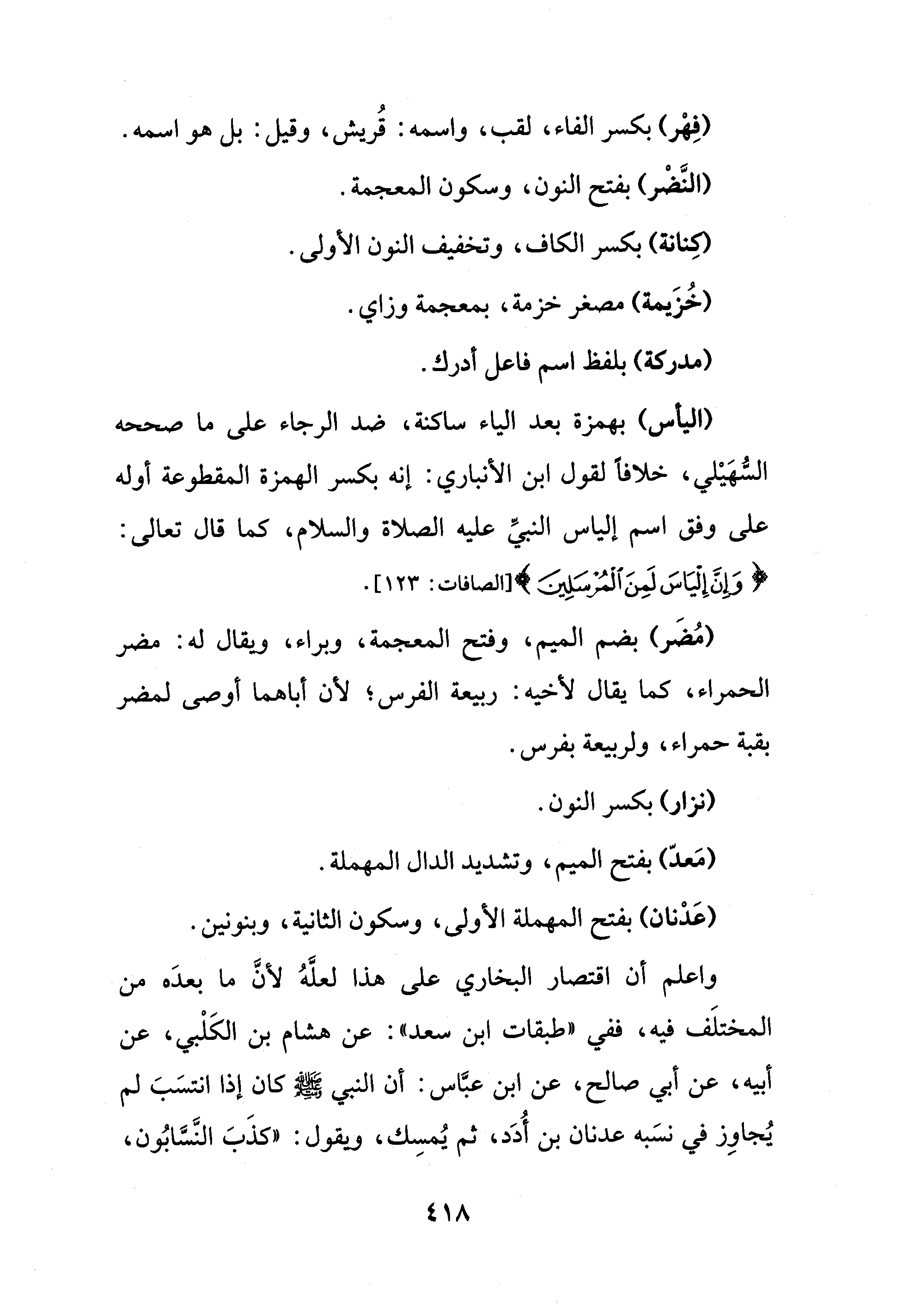 (فِهْر) بكسر الفاء، لقب، واسمه: قُريش، وقيل: بل هو اسمه.