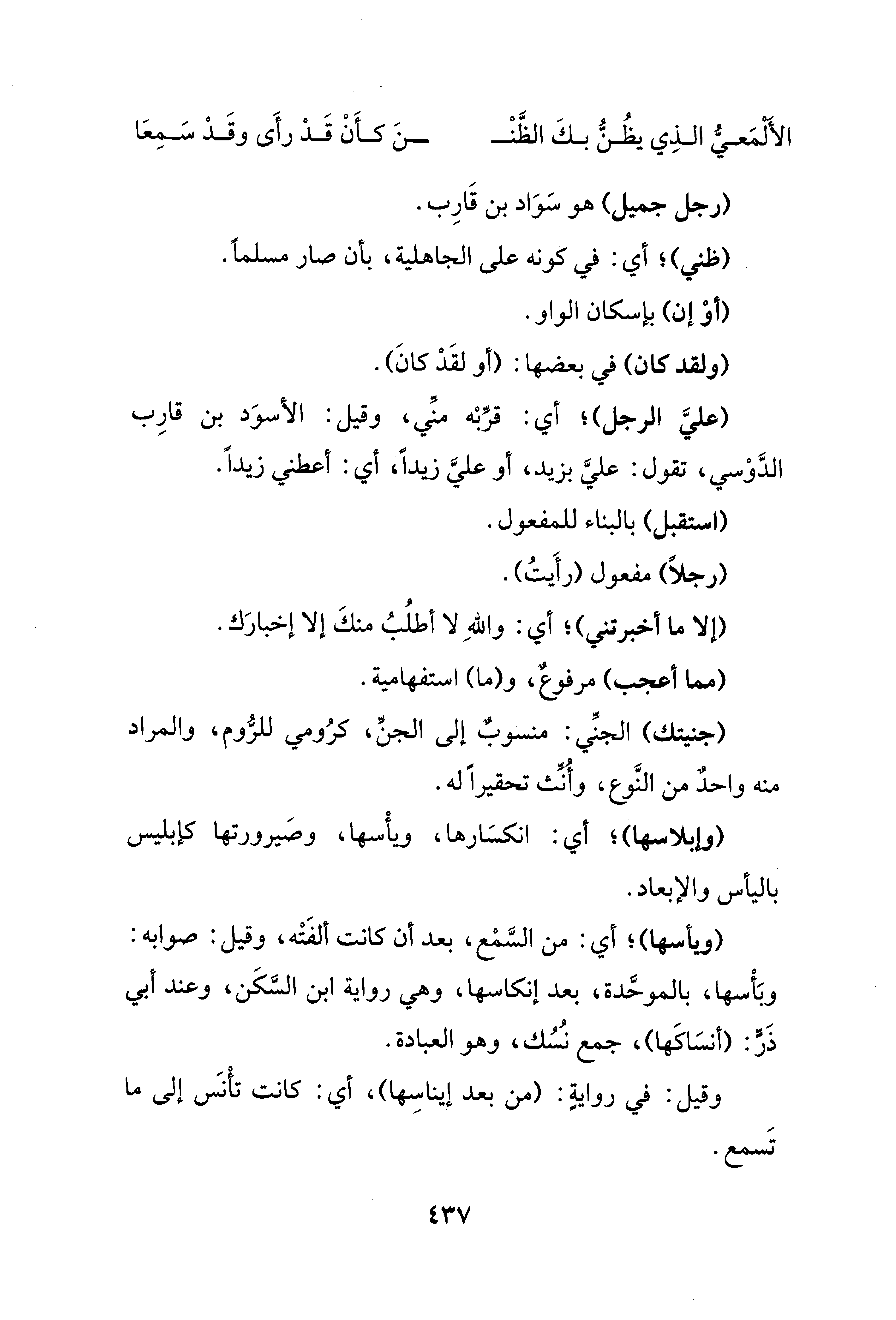 (رجل جميل) هو سَوَاد بن قَارِب.