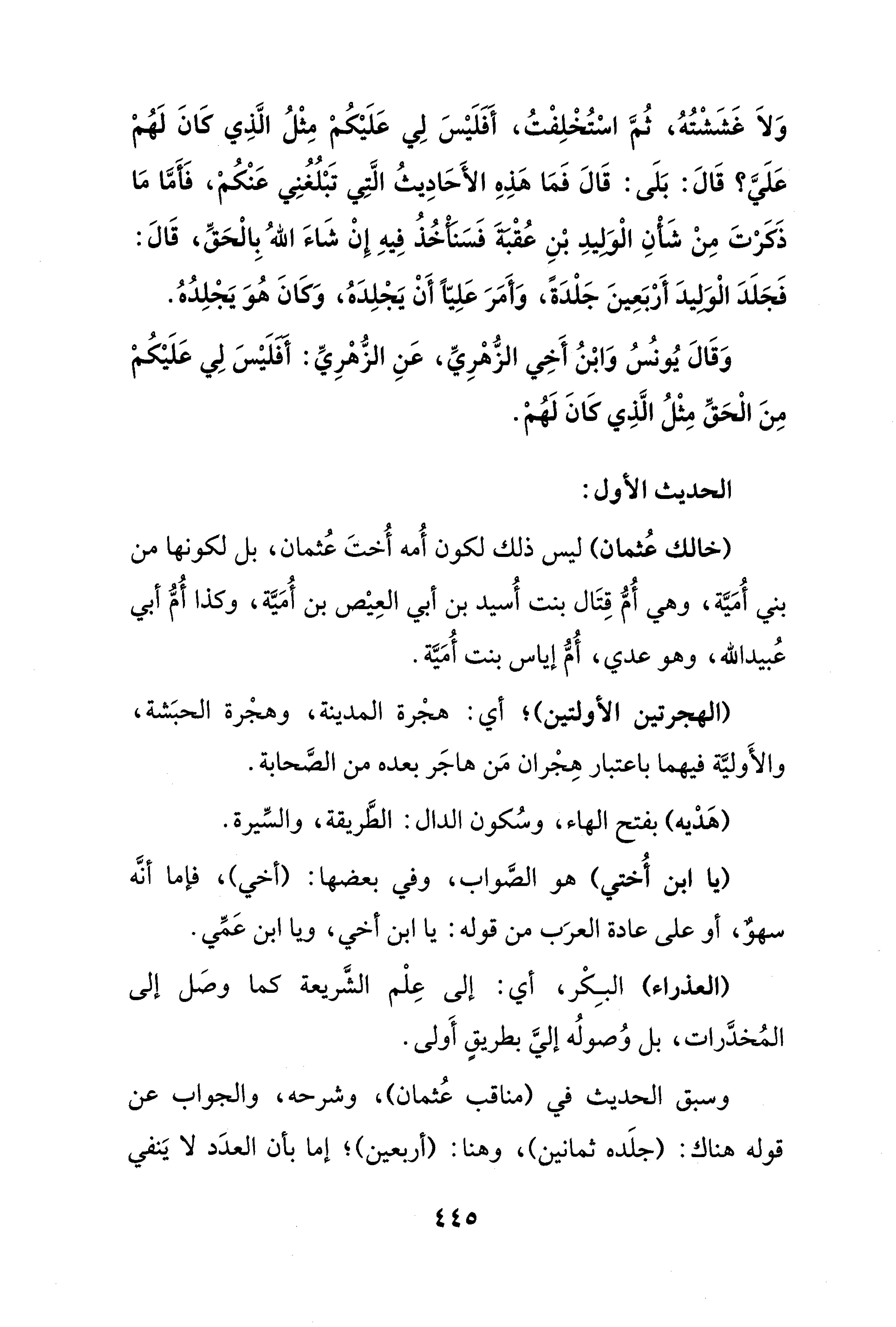 وَلَا غَشَشْتُهُ، ثُمَّ اسْتُخْلِفْتُ، أَفَلَيْسَ لِي عَلَيْكُمْ مِثْلُ الَّذِي كَانَ لَهُمْ عَلَيَّ؟ قَالَ: بَلَى: قَالَ فَمَا هَذِهِ الأَحَادِيثُ الَّتِي تَبْلُغُنِي عَنْكُمْ، فَأَمَّا مَا ذَكَرْتَ مِنْ شَأْنِ الْوَلِيدِ بْنِ عُقْبَةَ فَسَنَأْخُذُ فِيهِ إِنْ شَاءَ اللهُ بِالْحَقِّ، قَالَ: فَجَلَدَ الْوَلِيدَ أَرْبَعِينَ جَلْدَةً، وَأَمَرَ عَلِيًّا أَنْ يَجْلِدَهُ، وَكَانَ هُوَ يَجْلِدُهُ.