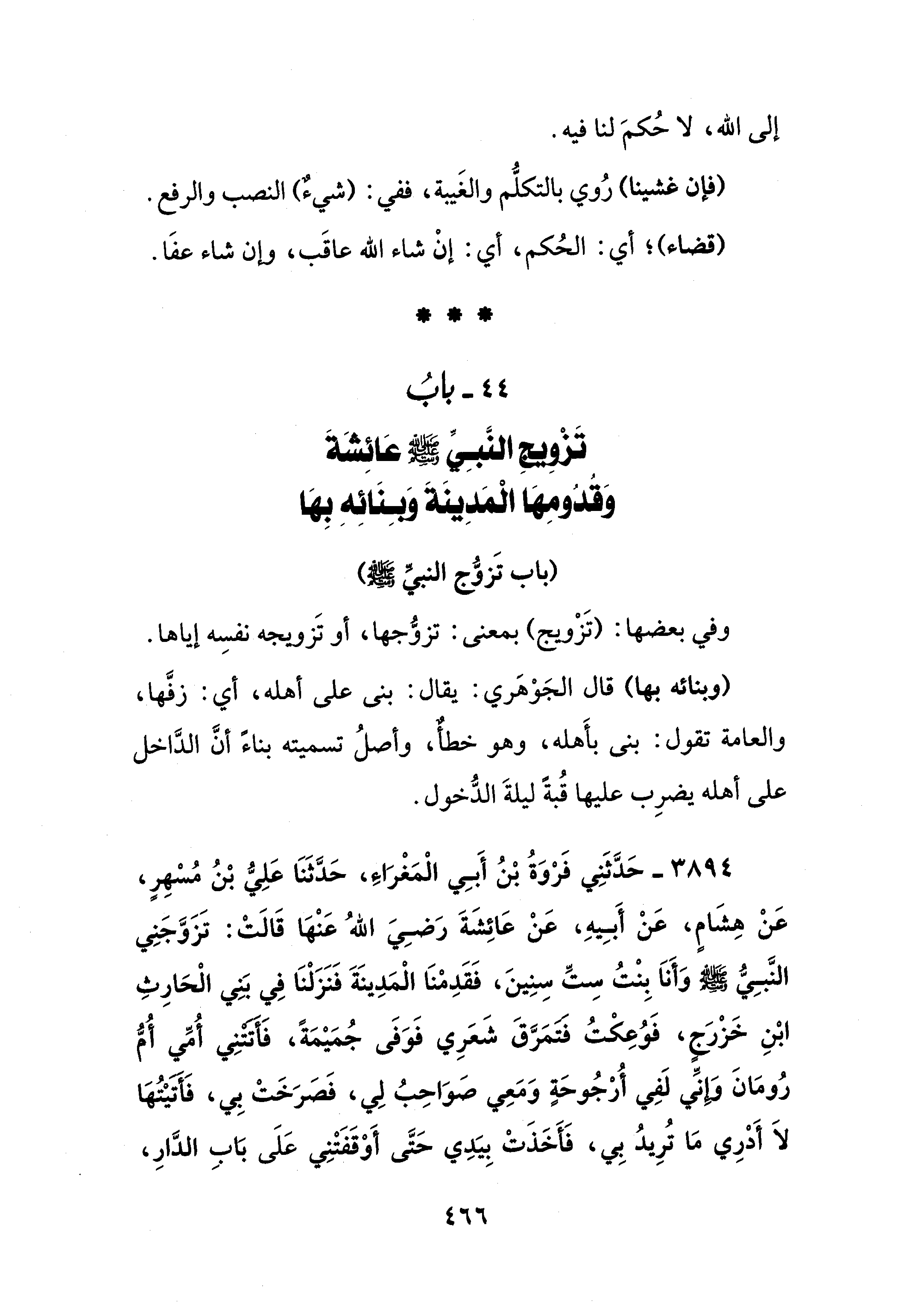 44 - بابُ تَزْوِيجِ النَّبِيِّ - صلى الله عليه وسلم - عَائِشَةَ وَقُدُومِهَا الْمَدِينَةَ وَبِنَائِهِ بِهَا