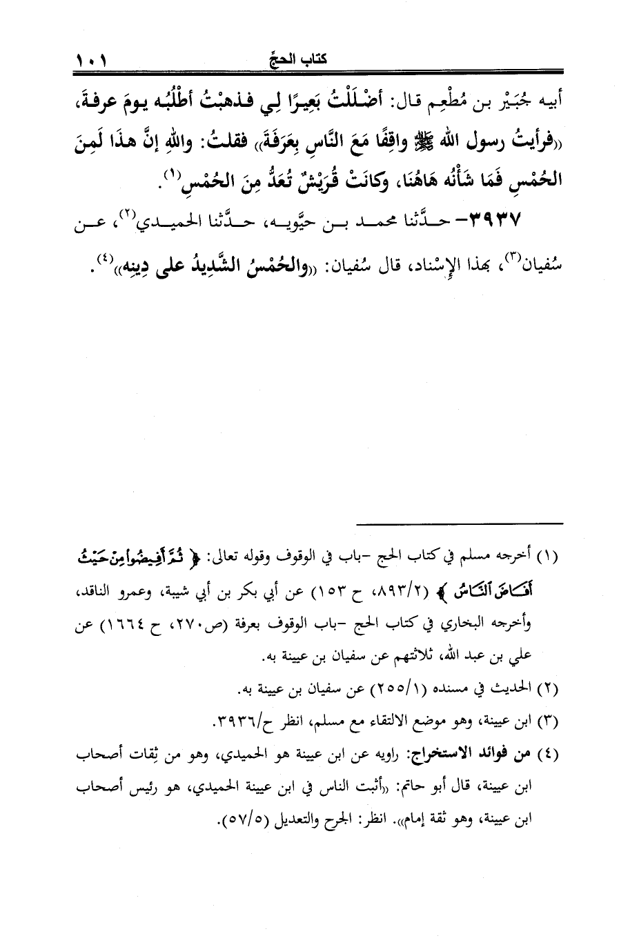 3937 - حدَّثنا محمد بن حيَّويه، حدَّثنا الحميدي (¬1)، عن سُفيان (¬2)، بهذا الإِسْناد، قال سُفيان: "والحُمْسُ الشَّدِيدُ على دِينِه" (¬3).