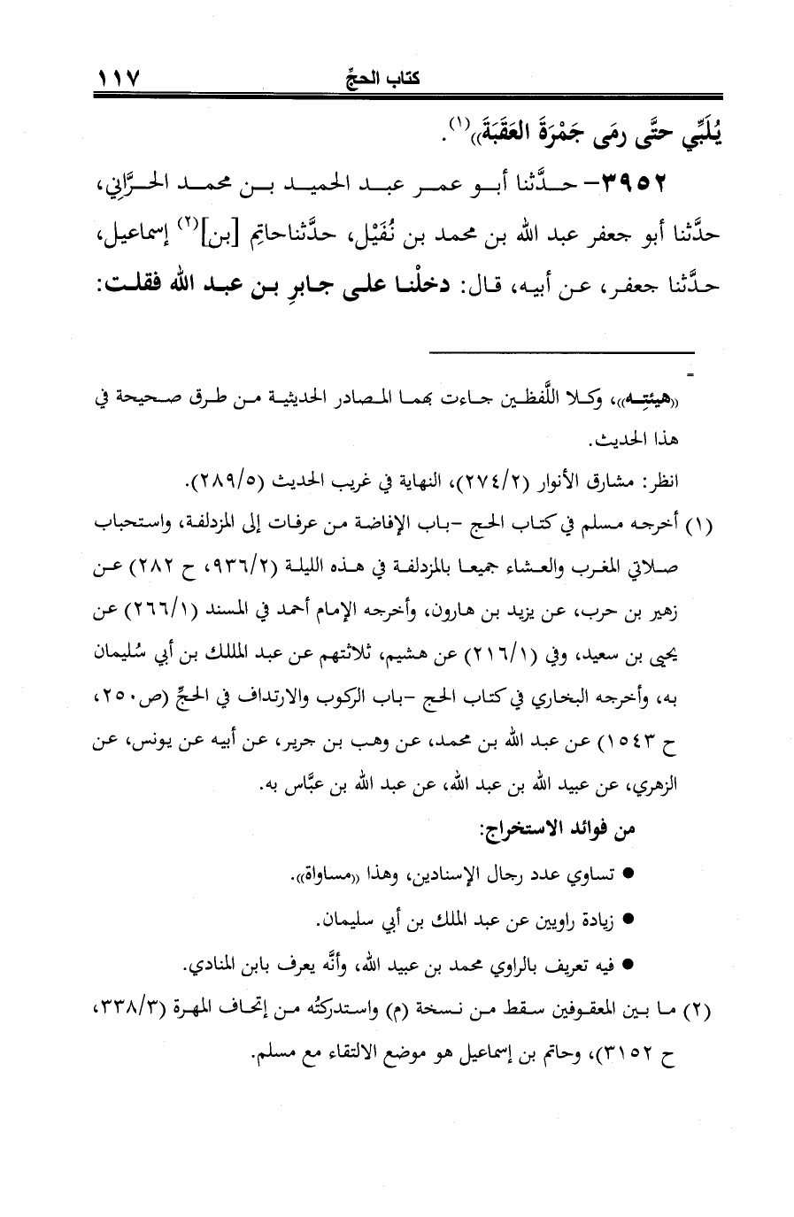 -[119]- = (ص 220، ح 1905) عبد الله بن محمد النفيلي وجماعةٍ، جميعا عن حاتم ابن إسماعيل به مطوَّلًا، والحديثُ قطعة من حديث جابر -صلى الله عليه وسلم- الطويل في الحجِّ، وقد فرَّقه أبو عوانة بالإسناد نفسه في مواضعَ كثيرة ستأتي برقم/3954، 3976، 3995، 4032، 4038، 4101، كما رواه أبو عوانة من طرق مختلفة كثيرة عن جعفر بن محمد به.