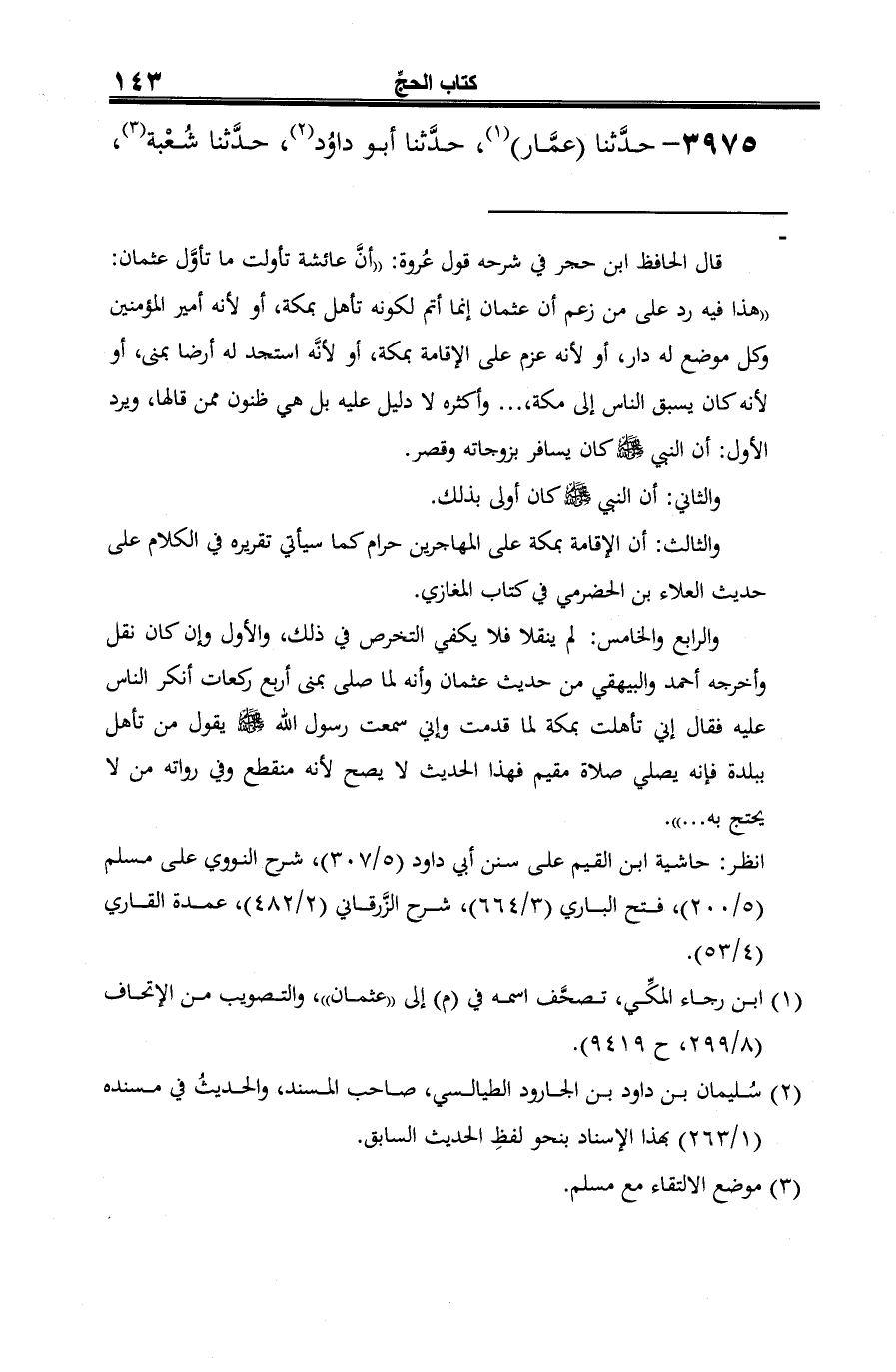 • متابعة شبابة بن سوَّار، وأبو داود الطَّيالسي معاذًا (راوي الحديث عند مسلم) على ذكره منًى في لفظ الحديث عن شُعبة، وقد عدَّ الأئمة أبا داود الطَّيالِسيَّ ومعاذا في الطبقة الأولى عن شعبة.
