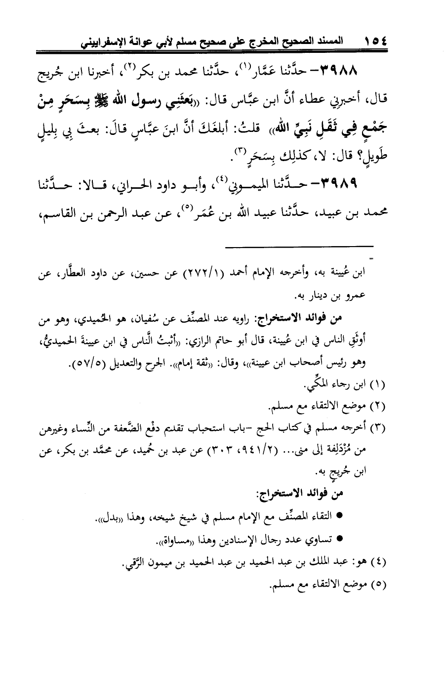 (¬3) أخرجه مسلم في كتاب الحج -باب استحباب تقديم دفْع الضَّعفة من النِّساء وغيرهن من مُزْدَلِفة إلى منى ... (2/ 941، 303) عن عبد بن حُميد، عن محمَّد بن بكر، عن ابن جُريج به.