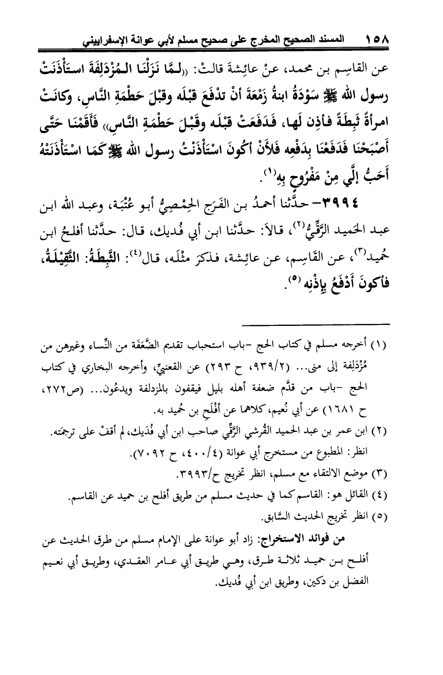 من فوائد الاستخراج: زاد أبو عوانة على الإمام مسلم من طرق الحديث عن أفلح بن حميد ثلاثة طرق، وهي طريق أبي عامر العقدي، وطريق أبي نعيم الفضل بن دكين، وطريق ابن أبي فُديك.