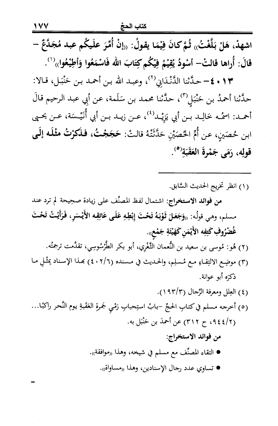 4013 - حدَّثنا الدَّنْدَانِي (¬1)، وعبد الله بن أحمد بن حَنْبَل، قالا: حدَّثنا أحمدُ بن حَنْبَلٍ (¬2)، حدَّثنا محمد بن سَلَمة، عن أبِي عبد الرحيم قالَ أحمد: اسمُه خَالِد بن أبي يَزِيْد (¬3)، عن زيد بن أبي أُنَيْسَة، عن يحيى ابن حُصَينٍ، عن أُمِّ الحُصَيْنِ حَدَّثَتْة قالتْ: حَجَجتُ، فذَكرْتُ مثْلَه إلَى قولِه، رَمَى جَمْرةَ العَقَبَةِ (¬4).