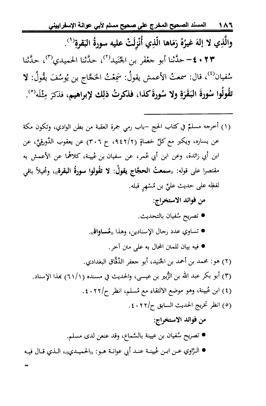4023 - حدَّثنا أبو جعْفَر بن الجُنَيد (¬1)، حدَّثنا الحميدي (¬2)، حدَّثنا سُفيان (¬3)، قال: سمعتُ الأعمش يقولُ: سَمِعْتُ الحَجَّاج بن يُوسُفَ يقُولُ: لا تقُولُوا سُورةَ البَقَرَةِ ولا سُورةَ كذا، فذكرتُ ذلِك لإبراهيم، فذكرَ مِثْلَه (¬4).