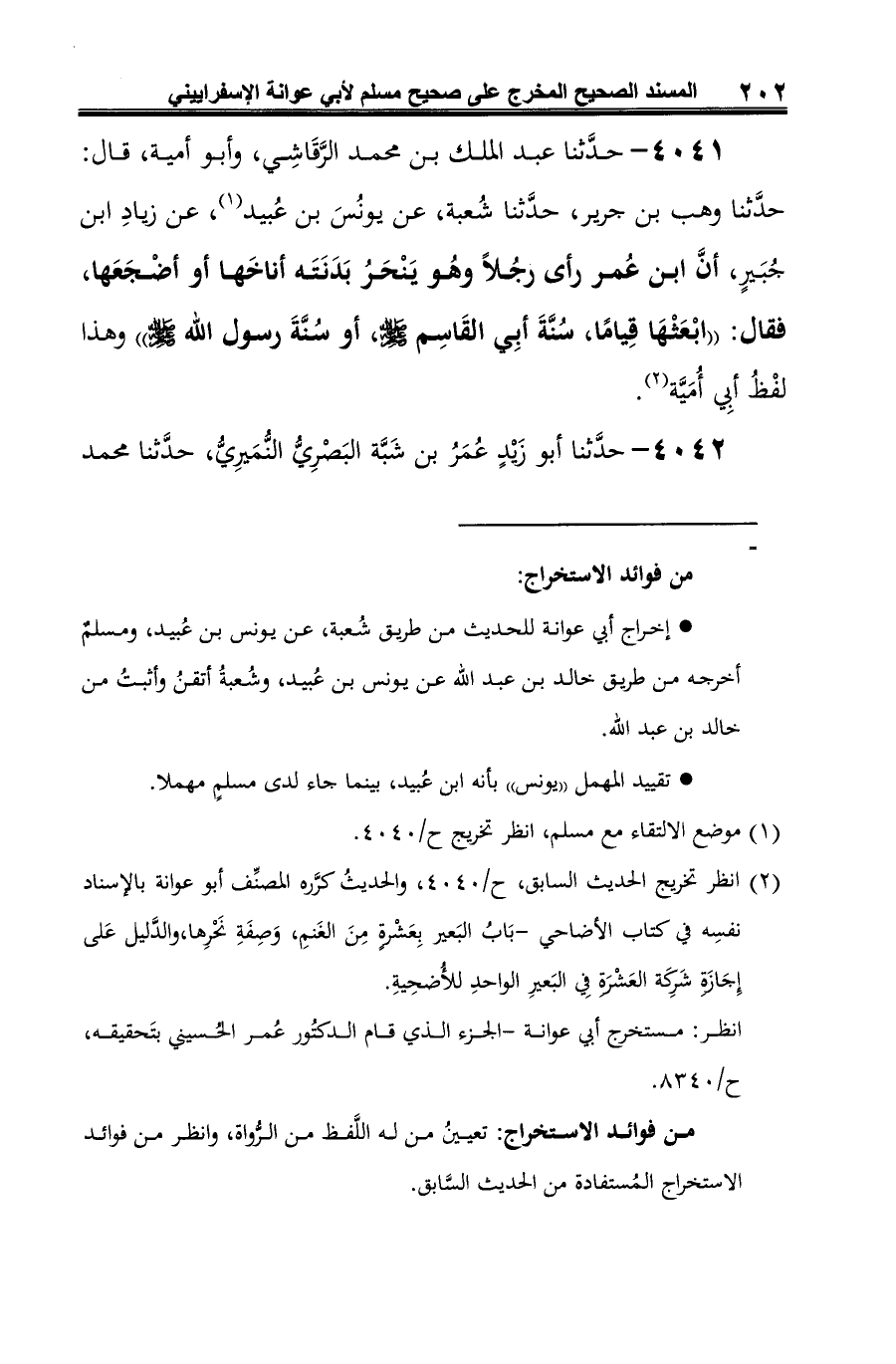 (¬2) انظر تخريج الحديث السابق، ح / 4040، والحديثُ كرَّره المصنِّف أبو عوانة بالإسناد نفسِه في كتاب الأضاحي- بَابُ البَعير بِعَشرة مِنَ الغَنمِ، وَصِفَةِ نَحْرِها، والدَّليل عَلى إِجَازة شَرِكَة العَشْرة في البَعيرِ الواحدِ للأُضحِيةِ.