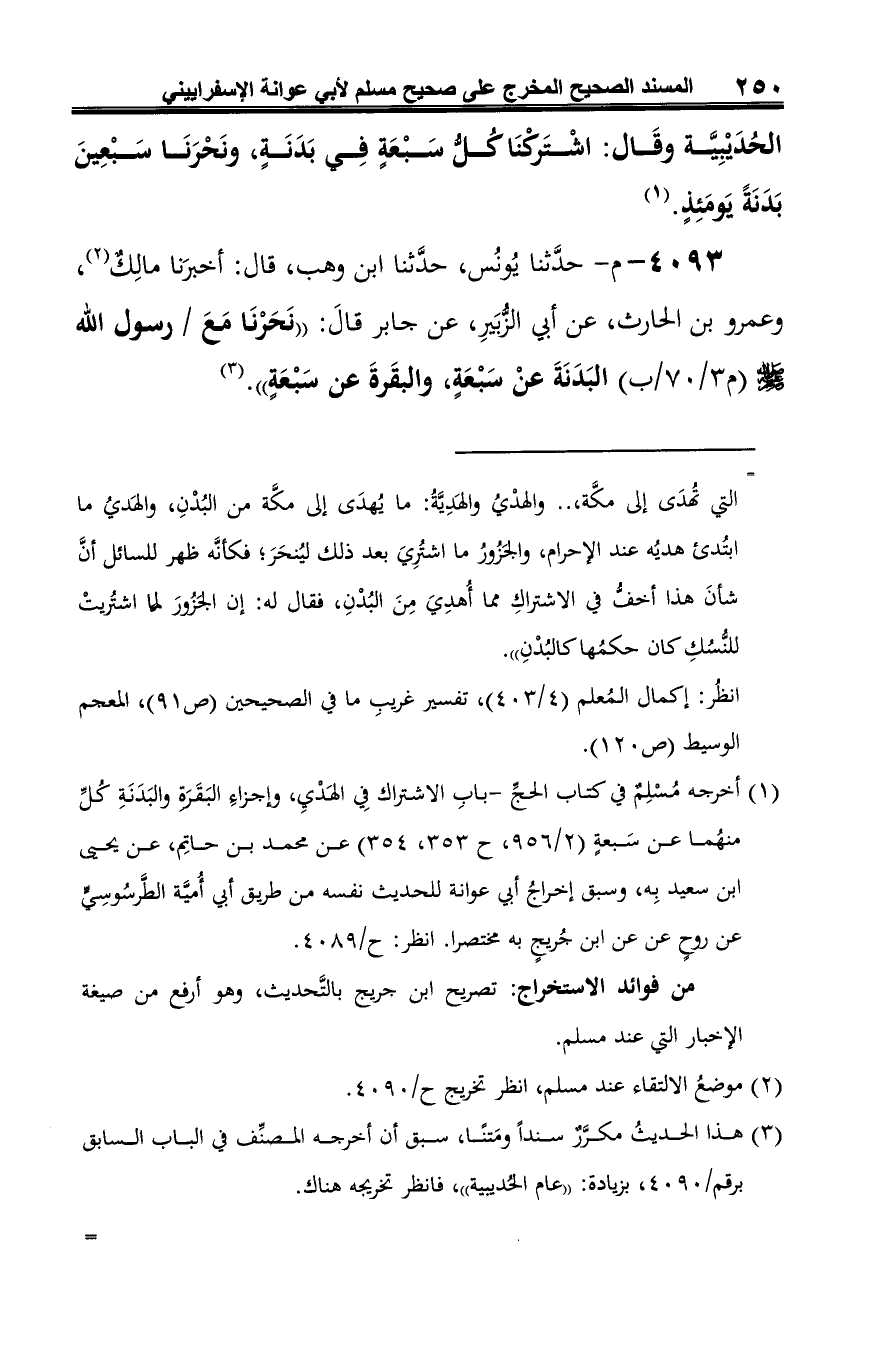 4093 - م- حدَّثنا يُونُس، حدَّثنا ابن وهب، قال: أخبرَنا مالِكٌ (¬1)، وعمرو بن الحارث، عن أبي الزُّبَيرِ، عن جابر قالَ: "نَحَرْنَاَ مع رسول الله -صلى الله عليه وسلم- البَدَنَةَ عنْ سَبْعَةٍ، والبقَرةَ عن سَبْعَةٍ". (¬2)
