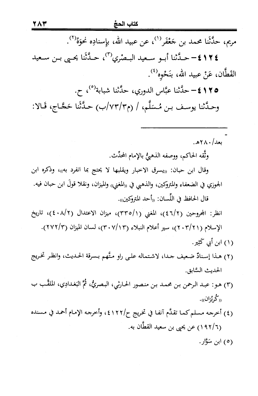 4125 - حدَّثنا عبَّاس الدوري، حدَّثنا شبابة (¬1)، ح.