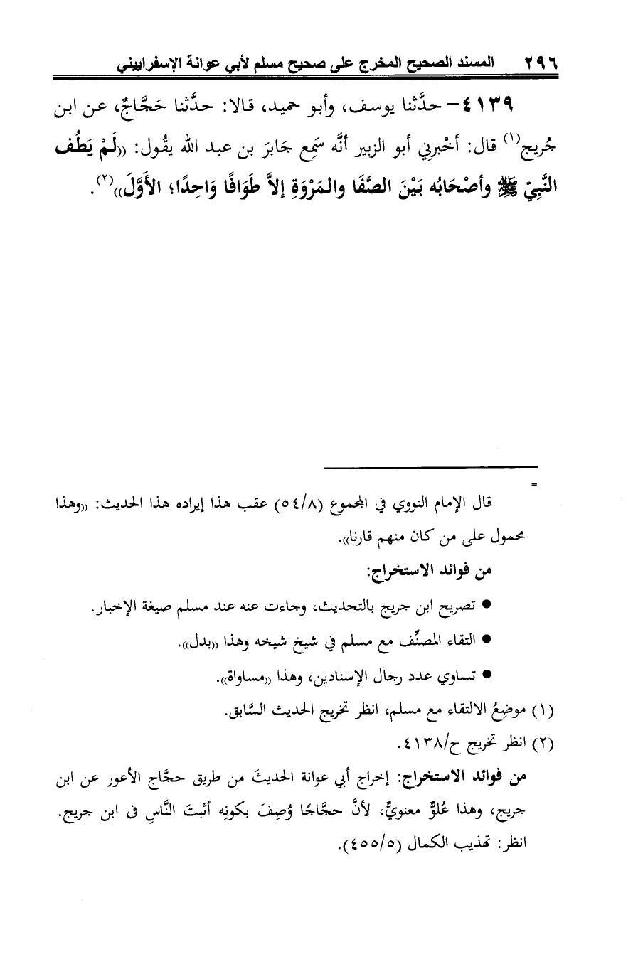 من فوائد الاستخراج: إخراج أبي عوانة الحديثَ من طريق حجَّاج الأعور عن ابن جريج، وهذا عُلوّ معنويٌّ، لأنِّ حجَّاجًا وُصِفَ بكونِه أثبتَ النَّاسِ في ابن جريج.