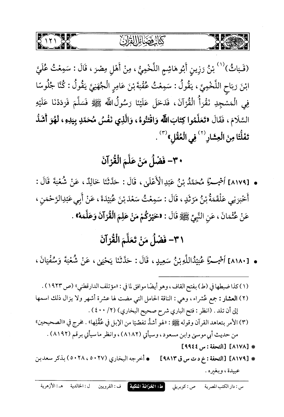 31- فَضْلُ مَنْ تَعَلَّمَ القُرْآنَ.
