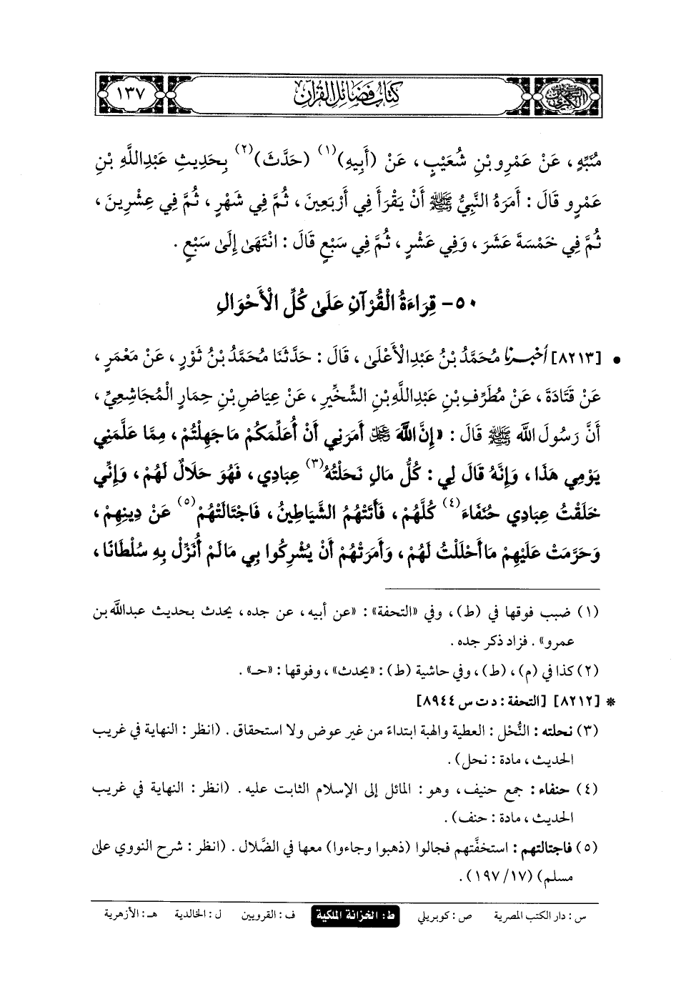 50 - قِرَاءَةُ القُرْآنِ عَلَى كُلِّ الأَحْوَالِ.