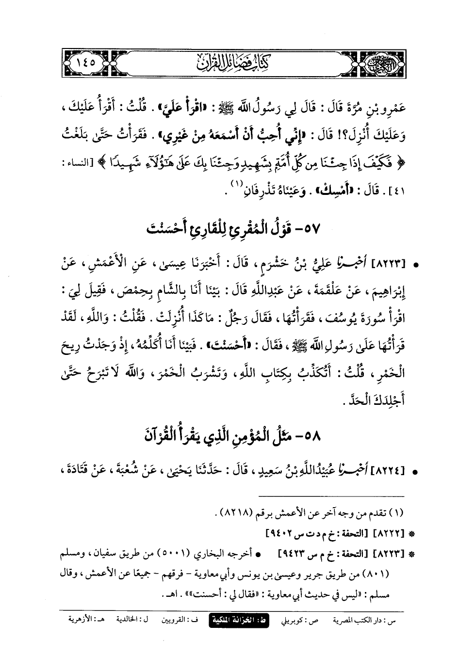 57 - قَوْلُ المُقْرِئِ لِلْقَارِئِ: أَحْسَنْتَ.