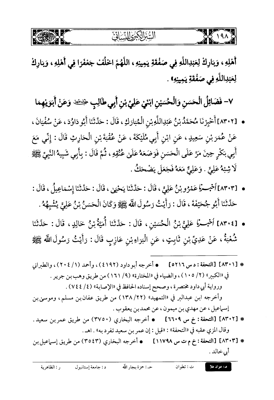 7- فَضَائِلُ الحَسَنِ وَالحُسَيْنِ ابنَيْ عَليِّ بنِ أَبي طَالِبٍ رَضِيَ اللهُ عَنهُمَا وَعَن أَبَوَيْهِمَا.