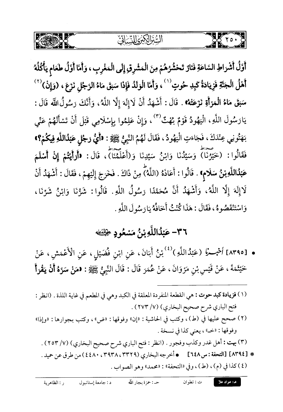 8395- أَخبَرنا مُحَمدُ بنُ أَبَانَ (1)، عَنِ ابنِ فُضَيْلٍ، عَنِ الأَعْمَشِ، عَن خَيْثَمَةَ، عَن قَيْسِ بنِ مَرْوَانَ، عَن عُمَرَ قَالَ: قَالَ النَّبيُّ صَلى الله عَلَيهِ وسَلم: مَنْ سرَّهُ أَنْ يَقْرَأَ القُرْآنَ غَضًّا كَمَا أُنْزِلَ، فَلْيَقْرَأْهُ عَلَى قِرَاءَةِ ابنِ مَسْعُودٍ.