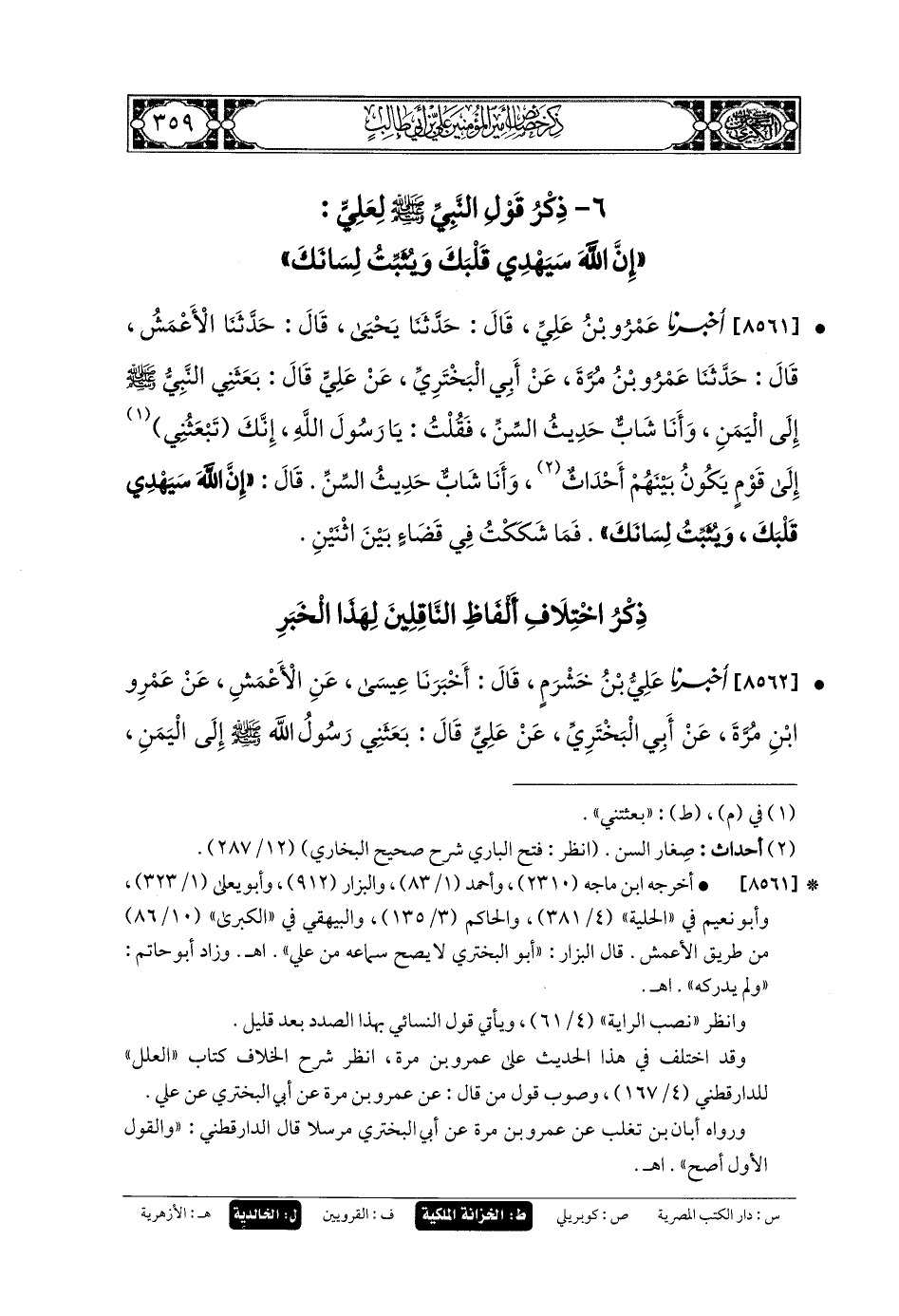 6 - ذِكْرُ قَوْلِ النَّبيِّ صَلى الله عَلَيهِ وسَلم لِعَليٍّ إِنَّ اللهَ سَيَهْدِي قَلْبَكَ وَيُثَبِّتُ لِسَانَكَ.