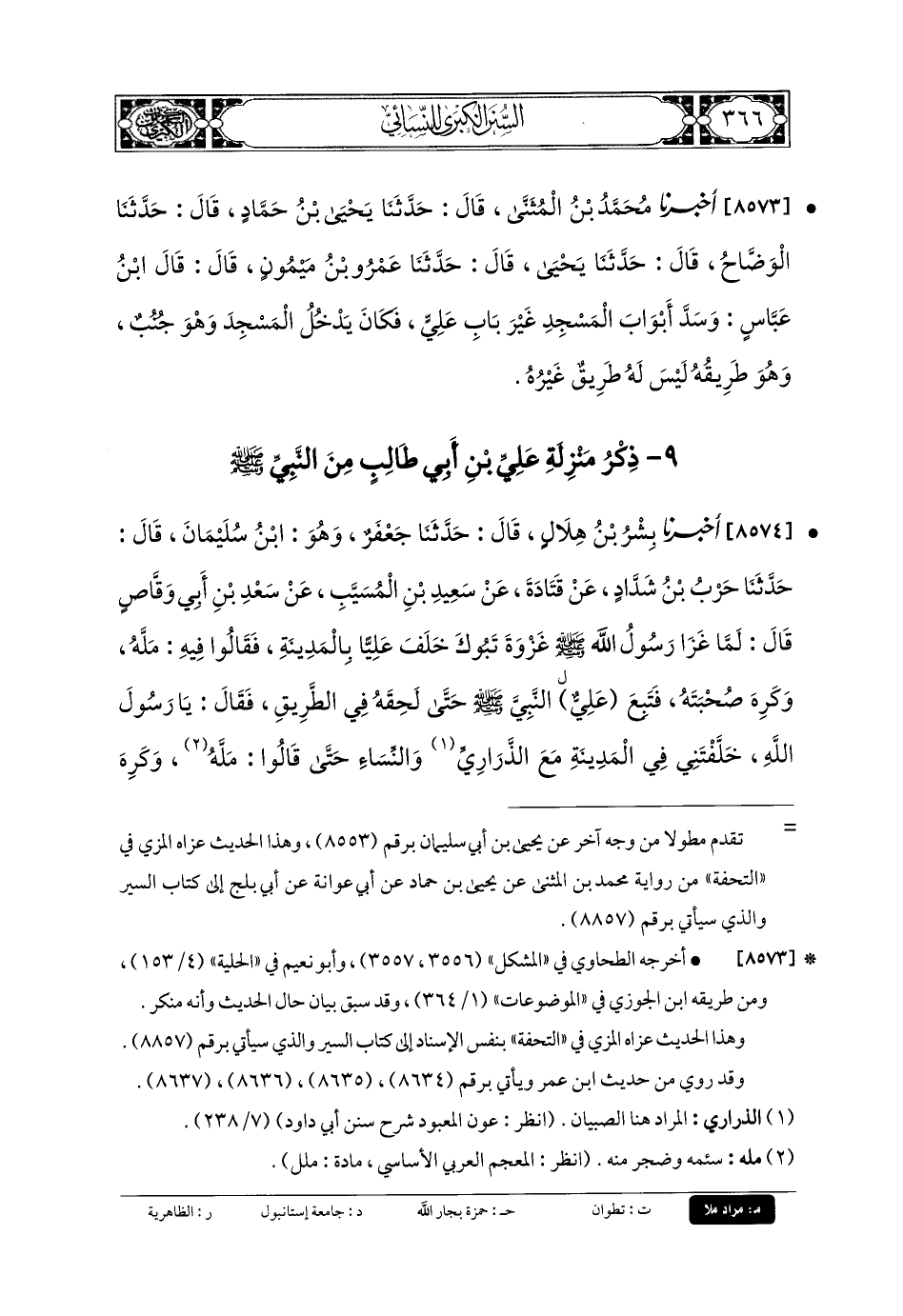 9 - ذِكْرُ مَنْزِلَةِ عَليِّ بنِ أَبي طَالِبٍ مِنَ النَّبيِّ صَلى الله عَلَيهِ وسَلم.