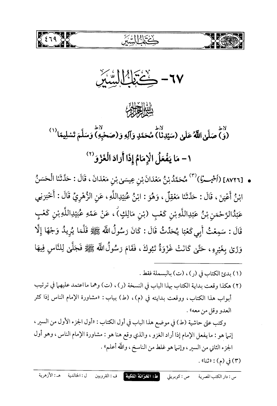 1 - مَا يَفْعَلُ الإِمَامُ إِذَا أَرَادَ الغَزْوَ.