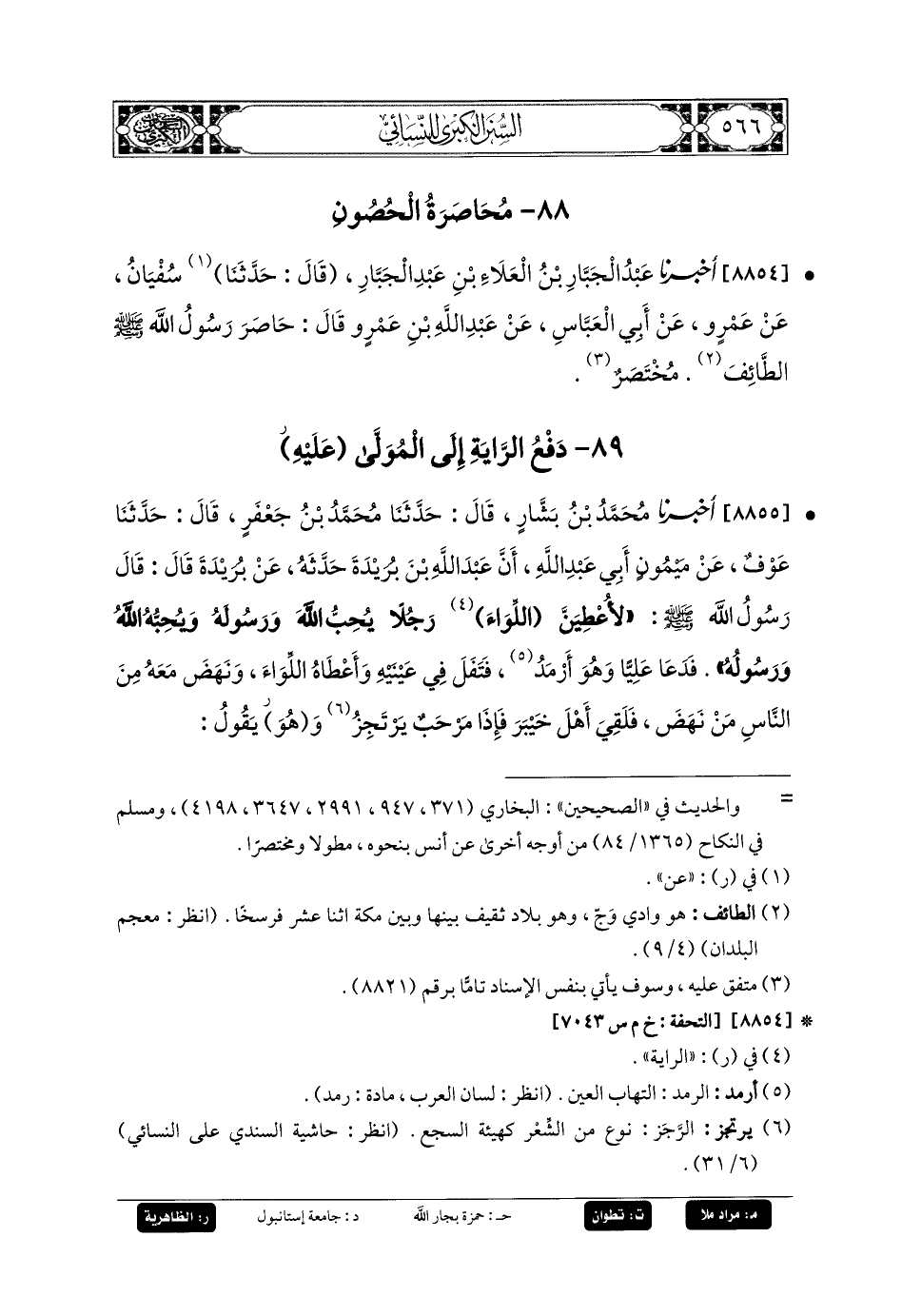 8854- أَخبَرنا عَبدُ الجَبَّارِ بنُ العَلاءِ بنِ عَبدِ الجَبَّارِ، قَالَ: حَدثنا سُفيانُ، عَن عَمْرٍو، عَن أَبي العَبَّاسِ، عَن عَبدِ اللهِ بنِ عَمْرٍو قَالَ: حَاصَرَ رَسُولُ اللهِ صَلى الله عَلَيهِ وسَلم الطَّائِفَ، مُخْتَصَرٌ.
