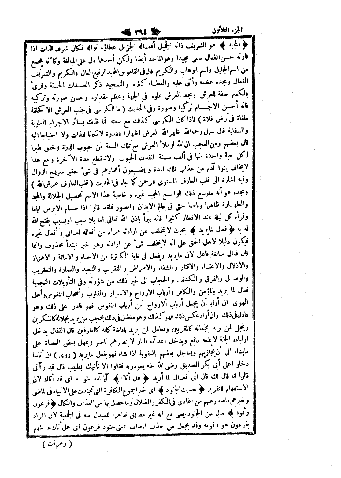 الْمَجِيدُ هو الشريف ذاته الجميل أفعاله الجزيل عطاؤه نواله فكان شرف الذات إذا قارنه حسن الفعال سمى مجيدا وهو الماجد أيضا ولكن أحدهما دل على المبالغة وكأنه يجمع من اسم الجليل واسم الوهاب والكريم قال فى القاموس المجيد الرفيع العال والكريم والشريف الفعال ومجده عظمه وأثنى عليه والعطاء كثره والتمجيد ذكر الصفات الحسنة وقرئ بالكسر صفة للعرش ومجد العرش علوه فى الجهة وعظم مقداره وحسن صورته وتركيبه فانه أحسن الأجسام تركيبا وصورة وفى الحديث (ما الكرسي فى جنب العرش الا كحلقة ملقاة فى أرض فلاة) فاذا كان الكرسي كذلك مع سعته فما ظنك بسائر الاجرام العلوية والسفلية قال سهل رحمه الله ظهر الله العرش إظهارا للقدرة لا مكانا للذات ولا احتياجا اليه قال بعضهم ومن العجب ان الله لو ملأ العرش مع تلك السعة من حبوب الذرة وخلق طيرا أكل حبة واحدة منها فى ألف سنة لنفدت الحبوب ولا تنقطع مدة الآخرة ومع هذا لا يخاف بنوا آدم من عذاب تلك المدة ويضيعون أعمارهم فى شىء حقير سريع الزوال وفيه اشارة الى قلب العارف المستوي للرحمن كما جاء فى الحديث (قلب العارف عرش الله) ومجده هو أنه ما وسع ذلك الواسع المجيد غيره وخاصية هذا الاسم تحصيل الجلالة والمجد والطهارة ظاهرا وباطنا حتى فى عالم الأبدان والصور فلقد قالوا إذا صام الأبرص أياما وقرأه كل ليلة عند الإفطار كثيرا فانه يبرأ بإذن الله تعالى اما بلا سبب او بسبب يفتح الله له به فَعَّالٌ لِما يُرِيدُ بحيث لا يتخلف عن إرادته مراد من أفعاله تعالى وأفعال غيره فيكون دليلا لاهل الحق على انه لا يتخلف شىء عن إرادته وهو خبر مبتدأ محذوف وانما قال فعال مبالغة فاعل لان ما يريد ويفعل فى غاية الكثرة من الاحياء والاماتة والإعزاز والاذلال والإغناء والاقتار والشفاء والأمراض والتقريب والتبعيد والعمارة والتخريب والوصل والفرق والكشف والحجاب الى غير ذلك من شؤونه وفى التأويلات النجمية فعال لما يريد بالمؤمن والكافر وأرباب الأرواح والاسرار والقلوب وأصحاب النفوس وأهل الهوى ان أراد أن يجعل أرباب الأرواح من أرباب النفوس فهو قادر على ذلك وهو عادل فى ذلك وان أراد عكس ذلك فهو كذلك وهو مفضل فى ذلك يحجب من يريد بجلاله كالمنكرين ويتجلى لمن يريد بجماله كالمقربين ويعامل لمن يريد بافاضة كماله كالعارفين قال القفال يدخل أولياءه الجنة لا يمنعه مانع ويدخل أعداءه النار لا ينصرهم ناصر ويمهل بعض العصاة على ما يشاء الى أن يجازيهم ويعاجل بعضهم بالعقوبة إذا شاء فهو يفعل ما يريد (روى) ان أناسا دخلوا على أبى بكر الصديق رضى الله عنه يعودونه فقالوا الا نأتيك بطبيب قال قد رآنى قالوا فما قال لك قال انى فعال لما أريد هَلْ أَتاكَ آيا آمد بتو. اى قد أتاك لان الاستفهام للتقرير حَدِيثُ الْجُنُودِ اى خبر الجموع الكافرة التي تجندت على الأنبياء فى الماضي وخبرهم ما صدر عنهم من التمادي فى الكفر والضلال وما حصل بها من العذاب والنكال فِرْعَوْنَ وَثَمُودَ بدل من الجنود يعنى مع انه غير مطابق ظاهرا للمبدل منه فى الجمعية لان المراد بفرعون هو وقومه وقد يجعل من حذف المضاف بمعنى جنود فرعون اى هل أتاك حديثهم