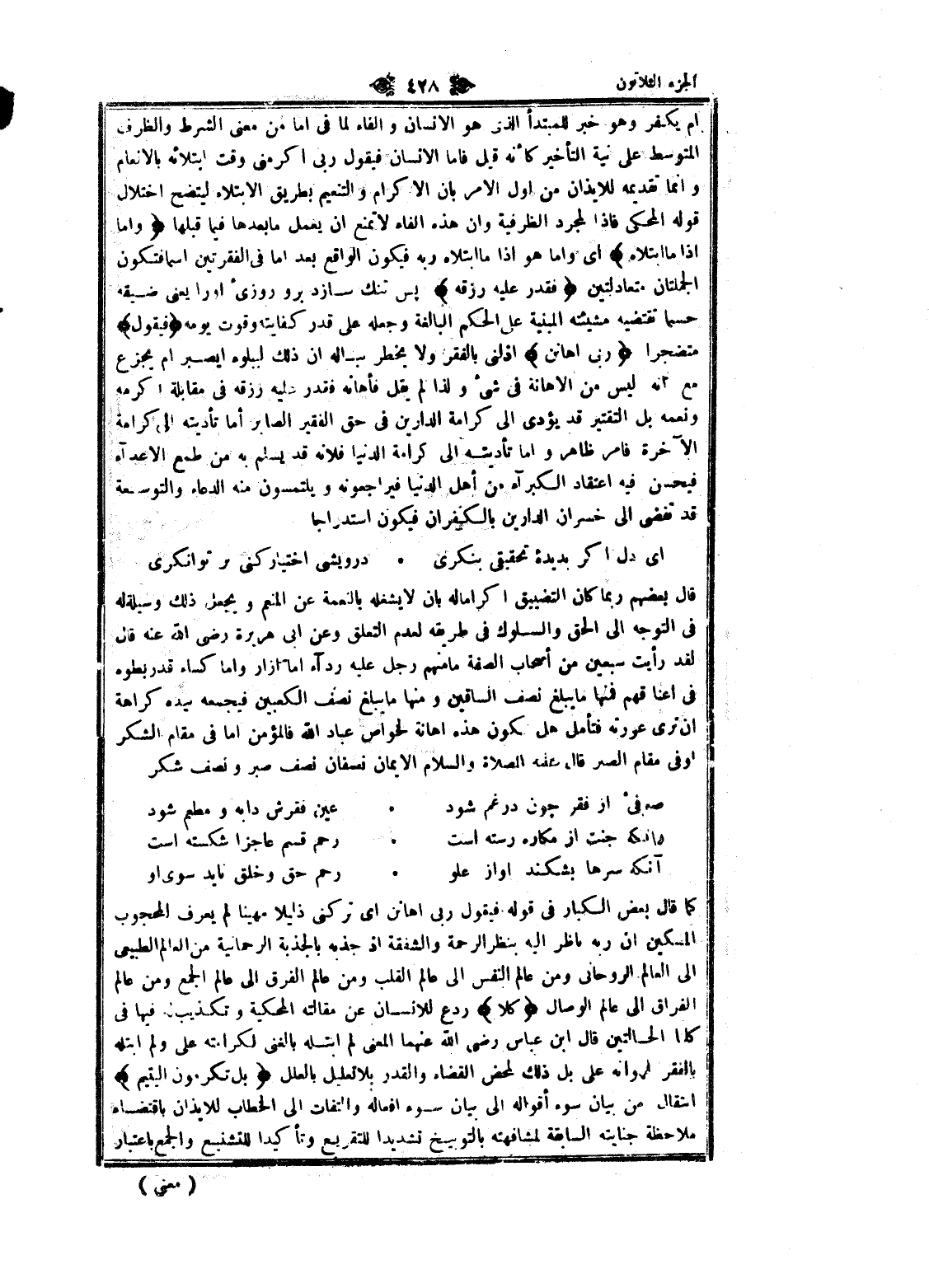 قال بعضهم ربما كان التضييق إكراما له بان لا يشغله بالنعمة عن المنعم ويجعل ذلك وسيلة له فى التوجه الى الحق والسلوك فى طريقه لعدم التعلق وعن ابى هريرة رضى الله عنه قال لقد رأيت سبعين من أصحاب الصفة ما منهم رجل عليه ردآء اما إزار واما كساء قد ربطوه فى أعناقهم فمنها ما يبلغ نصف الساقين ومنها ما يبلغ نصف الكعبين فيجمعه بيده كراهة ان ترى عورته فتأمل هل تكون هذه اهانة لخواص عباد الله فالمؤمن اما فى مقام الشكر او فى مقام الصبر قال عليه الصلاة والسلام الايمان نصفان نصف صبر ونصف شكر