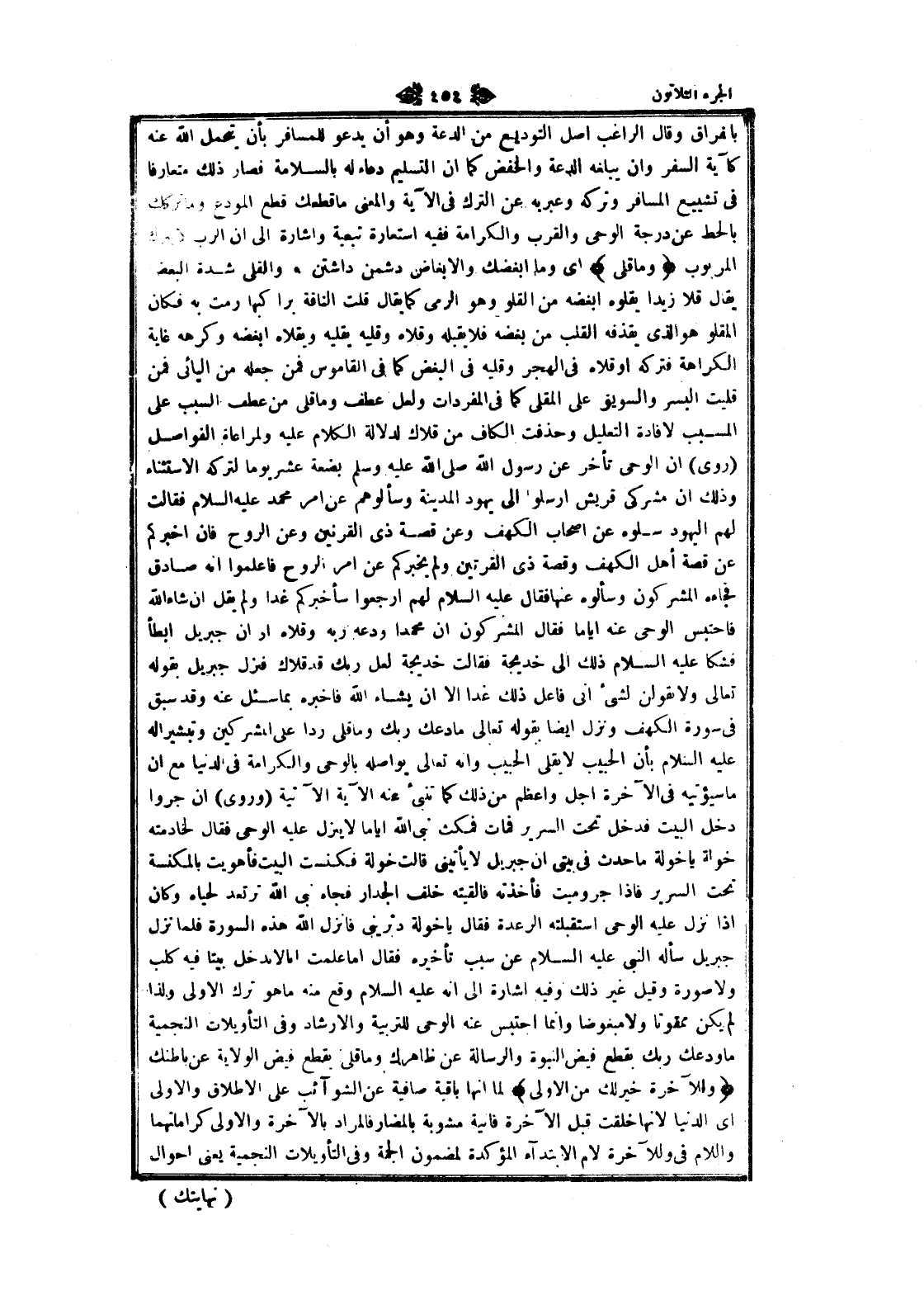 بالفراق وقال الراغب اصل التوديع من الدعة وهو أن يدعو للمسافر بأن يتحمل الله عنه كآية السفر وان يبلغه الدعة والخفض كما ان التسليم دعاء له بالسلامة فصار ذلك متعارفا فى تشييع المسافر وتركه وعبربه عن الترك فى الآية والمعنى ما قطعك قطع المودع وما تركك بالحط عن درجة الوحى والقرب والكرامة ففيه استعارة تبعية واشارة الى ان الرب لا يترك المربوب وَما قَلى اى وما أبغضك والإبغاض دشمن داشتن. والقلى شدة البغض يقال قلا زيدا يقلوه أبغضه من القلو وهو الرمي كما يقال قلت الناقة براكبها رمت به فكان المقلو هو الذي يقذفه القلب من بغضه فلا يقبله وقلاه وقليه يقليه ويقلاه أبغضه وكرهه غاية الكراهة فتركه او قلاه فى الهجر وقليه فى البغض كما فى القاموس فمن جعله من اليائى فمن قليت البسر والسويق على المقلى كما فى المفردات ولعل عطف وما قلى من عطف السبب على المسبب لافادة التعليل وحذفت الكاف من قلاك لدلالة الكلام عليه ولمراعاة الفواصل (روى) ان الوحى تأخر عن رسول الله صلى الله عليه وسلم بضعة عشر يوما لتركه الاستثناء وذلك ان مشركى قريش أرسلوا الى يهود المدينة وسألوهم عن امر محمد عليه السلام فقالت لهم اليهود سلوه عن اصحاب الكهف وعن قصة ذى القرنين وعن الروح فان أخبركم عن قصة أهل الكهف وقصة ذى القرتين ولم يخبركم عن امر الروح فاعلموا انه صادق فجاءه المشركون وسألوه عنها فقال عليه السلام لهم ارجعوا سأخبركم غدا ولم يقل ان شاء الله فاحتبس الوحى عنه أياما فقال المشركون ان محمدا ودعه ربه وقلاه او ان جبريل ابطأ فشكا عليه السلام ذلك الى خديجة فقالت خديجة لعل ربك قد قلاك فنزل جبريل بقوله تعالى ولا تقولن لشئ انى فاعل ذلك غدا الا ان يشاء الله فاخبره بما سئل عنه وقد سبق فى سورة الكهف ونزل ايضا بقوله تعالى ما دعك ربك وما قلى ردا على المشركين وتبشيرا له عليه السلام بأن الحبيب لا يقلى الحبيب وانه تعالى يواصله بالوحى والكرامة فى الدنيا مع ان ما سيؤتيه فى الآخرة أجل وأعظم من ذلك ما تنبئ عنه الآية الآتية (وروى) ان جروا دخل البيت فدخل تحت السرير فمات فمكث نبى الله أياما لا ينزل عليه الوحى فقال لخادمته خولة يا خولة ما حدث فى بيتي ان جبريل لا يأتينى قالت خولة فكنست البيت فأهويت بالمكنسة تحت السرير فاذا جروميت فأخذته فالقيته خلف الجدار فجاء نبى الله ترتعد لحياه وكان إذا نزل عليه الوحى استقبلته الرعدة فقال يا خولة دثرينى فانزل الله هذه السورة فلما نزل جبريل سأله النبي عليه السلام عن سبب تأخيره فقال اما علمت انا لا ندخل بيتا فيه كلب ولا صورة وقيل غير ذلك وفيه اشارة الى انه عليه السلام وقع منه ما هو ترك الاولى ولذا لم يكن ممقوتا ولا مبغوضا وانما احتبس عنه الوحى للتربية والإرشاد وفى التأويلات النجمية ما ودعك ربك بقطع فيض النبوة والرسالة عن ظاهرك وما قلى بقطع فيض الولاية عن باطنك وَلَلْآخِرَةُ خَيْرٌ لَكَ مِنَ الْأُولى