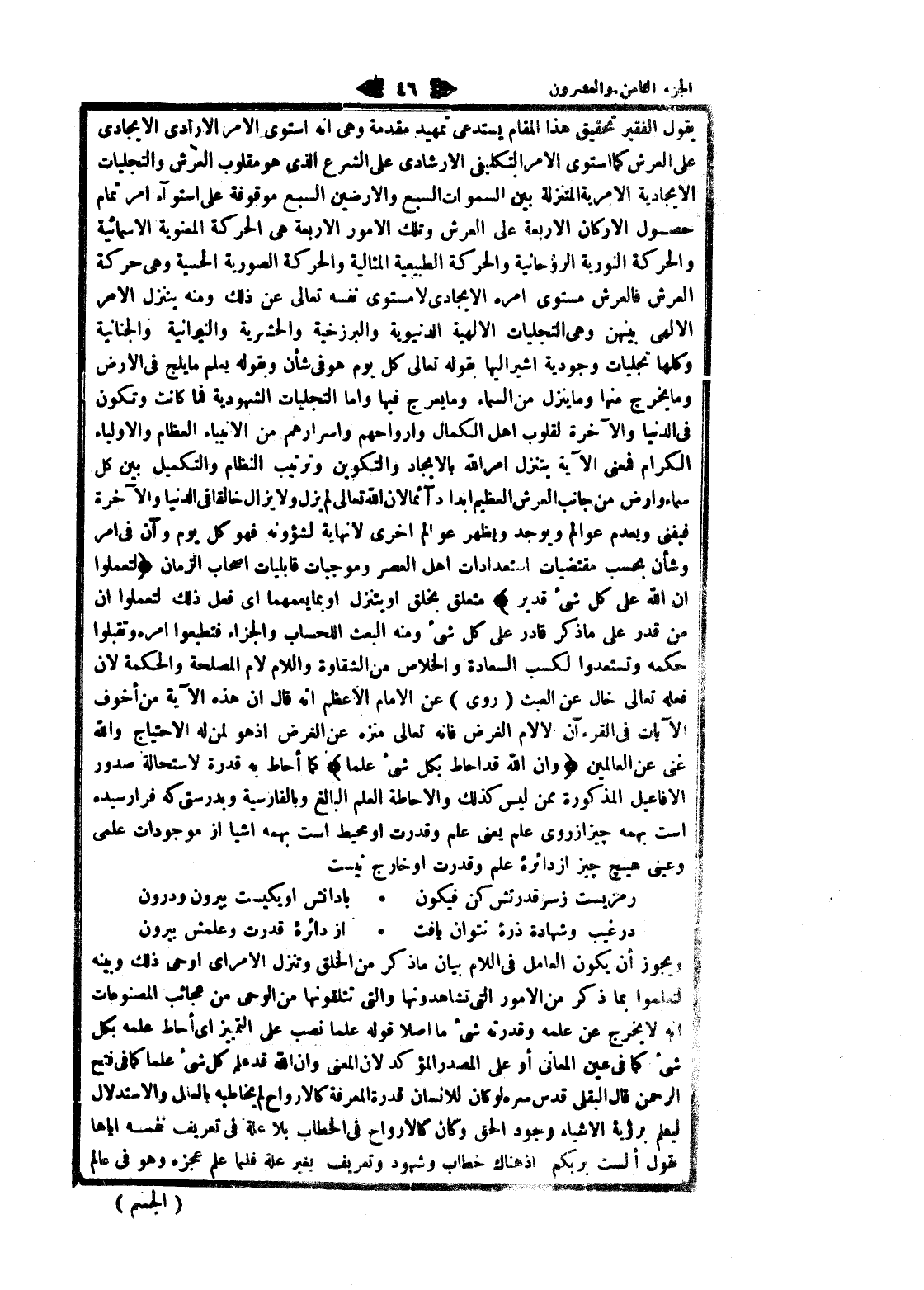 رمزيست ز سر قدرتش كن فيكون ... با دانش او يكيست بيرون ودرون