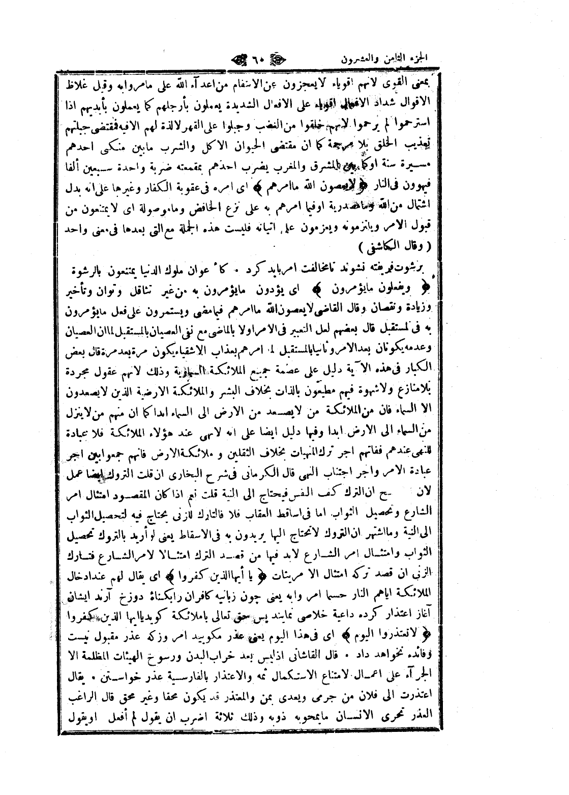 بمعنى القوى لانهم أقوياء لا يعجزون عن الانتقام من أعداء الله على ما مروا به وقيل غلاظ الأقوال شداد الافعال أقوياء على الافعال الشديدة يعملون بأرجلهم كما يعملون بأيديهم إذا استرحموا لم يرحموا لانهم خلقوا من الغضب وجبلوا على القهر لا لذة لهم الا فيه فمقتضى جبلتهم تعذيب الخلق بلا مرحمة كما ان مقتضى الحيوان الاكل والشرب ما بين منكى أحدهم مسيرة سنة او كما بين المشرق والمغرب يضرب أحدهم بمقمعته ضربة واحدة سبعين ألفا فيهوون فى النار لا يَعْصُونَ اللَّهَ ما أَمَرَهُمْ اى امره فى عقوبة الكفار وغيرها على انه بدل اشتمال من الله وما مصدرية او فيما أمرهم به على نزع الخافض وما موصولة اى لا يمتنعون من قبول الأمر ويلتزمونه ويعزمون على إتيانه فليست هذه الجملة مع التي بعدها فى معنى واحد (وقال الكاشفى) برشوت فريفته نشوند تا مخالفت امر بايد كرد. كأعوان ملوك الدنيا يمتنعون بالرشوة وَيَفْعَلُونَ ما يُؤْمَرُونَ اى يؤدون ما يؤمرون به من غير تثاقل وتوان وتأخير وزيادة ونقصان وقال القاضي لا يعصون الله ما أمرهم فيما مضى ويستمرون على فعل ما يؤمرون به فى المستقبل قال بعضهم لعل التعبير فى الأمر اولا بالماضي مع نفى العصيان بالمستقبل لما ان العصيان وعدمه يكونان بعد الأمر وثانيا بالمستقبل لما أمرهم بعذاب الأشقياء يكون مرة بعد مرة قال بعض الكبار فى هذه الآية دليل على عصمة جميع الملائكة السماوية وذلك لانهم عقول مجردة بلا منازع ولا شهوة فيهم مطيعون بالذات بخلاف البشر والملائكة الارضية الذين لا يصعدون الا السماء فان من الملائكة من لا يصعد من الأرض الى السماء ابدا كما ان منهم من لا ينزل من السماء الى الأرض ابدا وفيها دليل ايضا على انه لا نهى عند هؤلاء الملائكة فلا عبادة للنهى عندهم ففاتهم اجر ترك المنهيات بخلاف الثقلين وملائكة الأرض فانهم جمعوا بين اجر عبادة الأمر واجر اجتناب النهى قال الكرماني فى شرح البخاري ان قلت التروك ايضا عمل لان الأصح ان الترك كف النفس فيحتاج الى النية قلت نعم إذا كان المقصود امتثال امر الشارع وتحصيل الثواب اما فى إسقاط العقاب فلا فالتارك للزنى يحتاج فيه لتحصيل الثواب الى النية وما اشتهر ان التروك لا تحتاج إليها يريدون به فى الاسقاط يعنى لو أريد بالتروك تحصيل الثواب وامتثال امر الشارع لا بد فيها من قصد الترك امتثالا لامر الشارع فتارك الزنى ان قصد تركه امتثال الأمر يثات يا أَيُّهَا الَّذِينَ كَفَرُوا اى يقال لهم عند إدخال الملائكة إياهم النار حسبما أمروا به يعنى چون زبانيه كافران را بگناه دوزخ آرند ايشان آغاز اعتذار كرده داعية خلاصى نمايند پس حق تعالى باملائكة كويد يا ايها الذين كفروا لا تَعْتَذِرُوا الْيَوْمَ اى فى هذا اليوم يعنى عذر مكوبيد امروز كه عذر مقبول نيست وفائده نخواهد داد. قال القاشاني إذ ليس بعد خراب البدن ورسوخ الهيئات المظلمة الا الجزاء على اعمال لامتناع الاستكمال ثمه والاعتذار بالفارسية عذر خواستن. يقال اعتذرت الى فلان من جرمى ويعدى بمن والمعتذر قد يكون محقا وغير محق قال الراغب العذر تحرى الإنسان ما يمحوبه ذوبه وذلك ثلاثة اضرب ان يقول لم أفعل او يقول