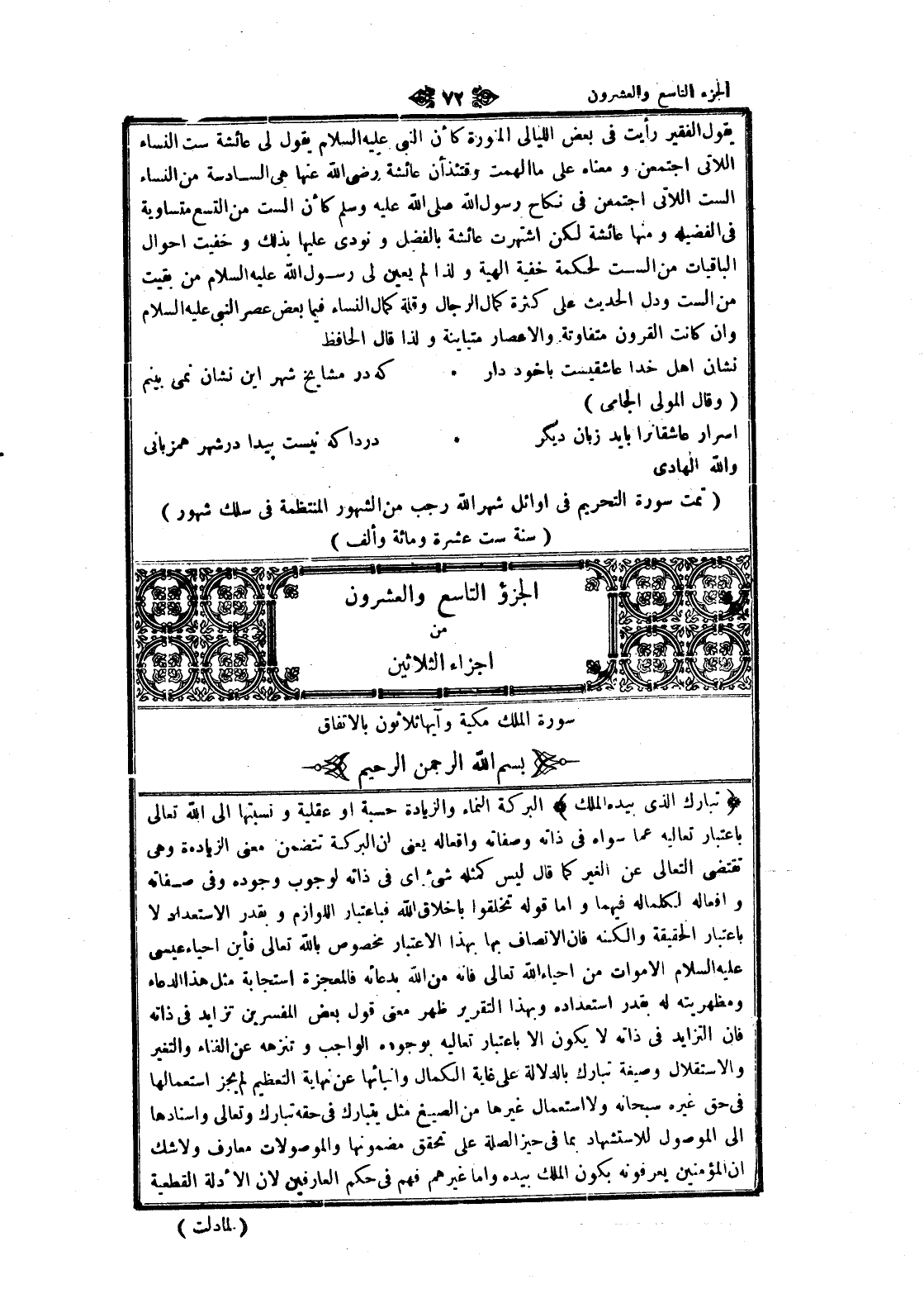 والله الهادي (تمت سورة التحريم فى أوائل شهر الله رجب من الشهور المنتظمة فى سلك شهور) (سنة ست عشرة ومائة وألف) الجزء التاسع والعشرون من اجزاء الثلاثين