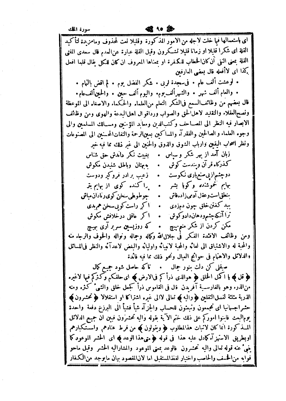 قال بعضهم من وظائف السمع فى الشكر التعلم من العلماء والحكماء والإصغاء الى الموعظة ونصح العقلاء والتقليد لاهل الحق والصواب ورد اقوال اهل البدعة والهوى ومن وظائف الابصار فيه النظر الى المصاحف وكتب الدين ومعابد المؤمنين ومسالك المسلمين والى وجوه العلماء والصالحين والفقراء والمساكين بعين الرحمة والتفات المحسنين الى المصنوعات ونظر اصحاب اليقين وارباب الشوق والذوق والحنين الى غير ذلك مما فيه خير