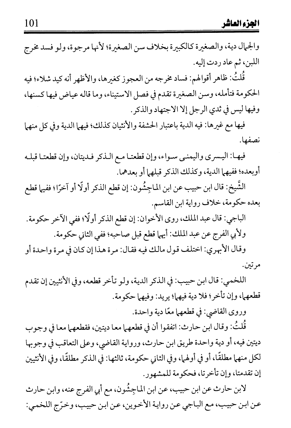 لابن حارث عن ابن حبيب، عن ابن الماجشون، مع أبي الفرج عنه، وابن حارث عن ابن حبيب، مع الباجي عن رواية الأخوين، عن ابن حبيب، وخرج اللخمي: