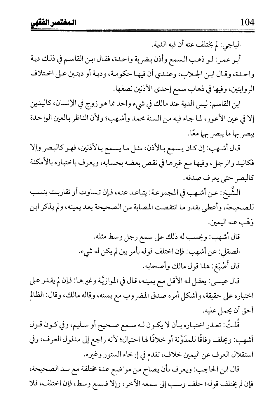 ابن القاسم: ليس الدية عند مالك في شئ واحد مما هو زوج في الإنسان، كاليدين غلا في عين الأعور، لما جاء فه من السنة محمد وأشهب؛ ولأن الناظر بالعين الواحدة يبصر بها ما يبصر بهما معاً.