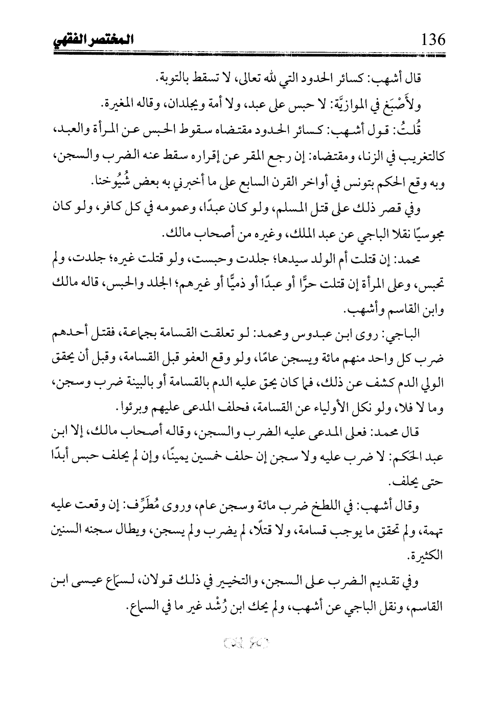 وفي قصر ذلك على قتل المسلم، ولو كان عبدًا، وعمومه في كل كافر، ولو كان مجوسيًا نقلا الباجي عن عبد الملك، وغيره من أصحاب مالك.