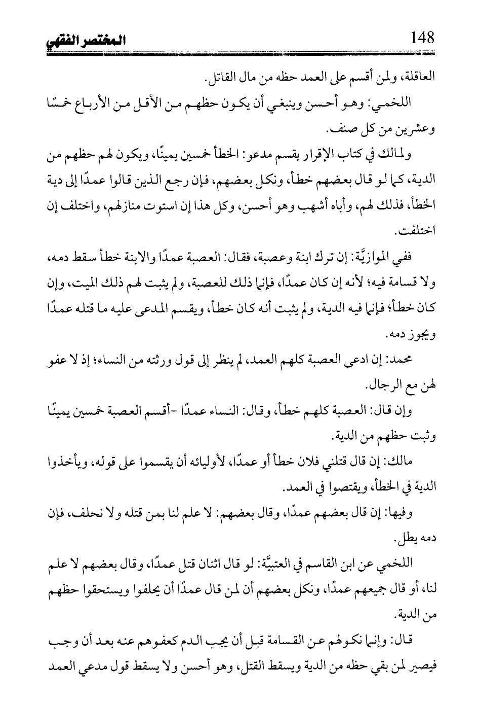 اللخمي عن ابن القاسم في العتبية: لو قال إثنان قتل عمداً، وقال بعضهم لا علم لنا، أو قال جميعهم عمداً، ونكل بعضهم أن لمن قال عمداً أن يحلفوا ويستحقوا حظهم من الدية.