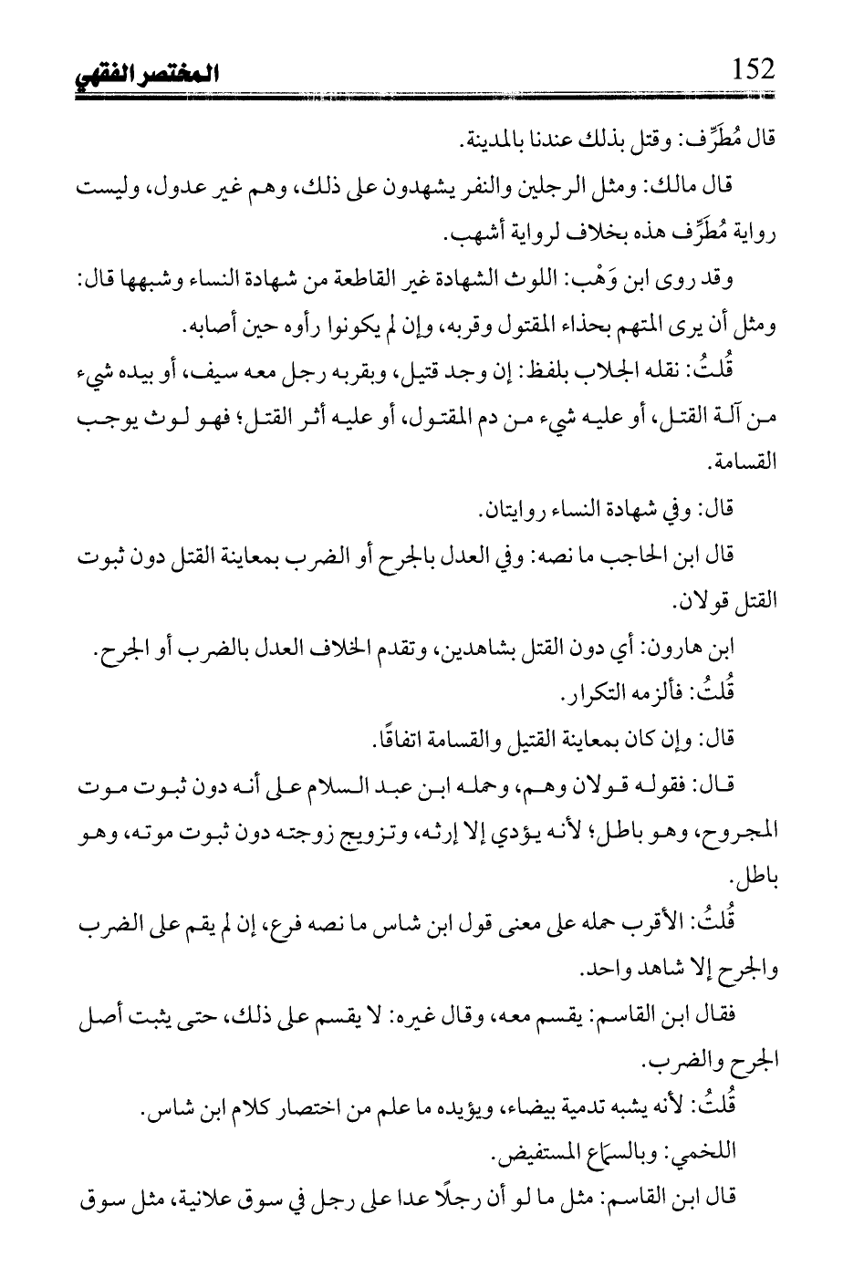 قال ابن الحاجب ما نصه: وفي العدل بالجرح أو الضرب بمعاينة القتل دون ثبوت القتل قولان.