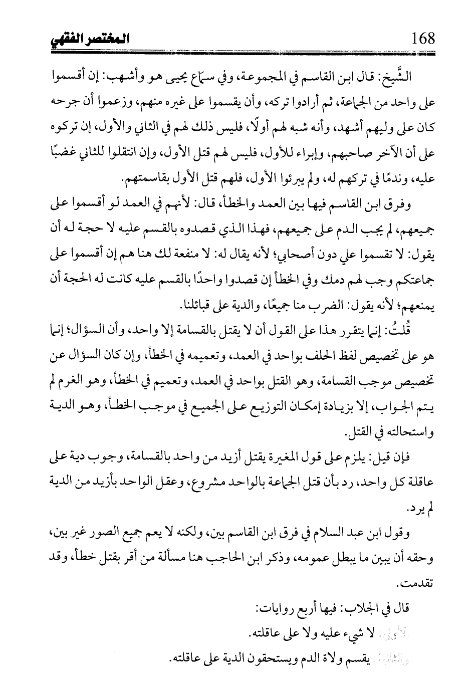 وقول ابن عبد السلام في فرق ابن القاسم بين، ولكنه لا يعم جميع الصور غير بين، وحقه أن يبين مايبطل عمومه، وذكر ابن الحاجب هنا مسألة من أقر بقتل خطأ، وقد تقدمت.