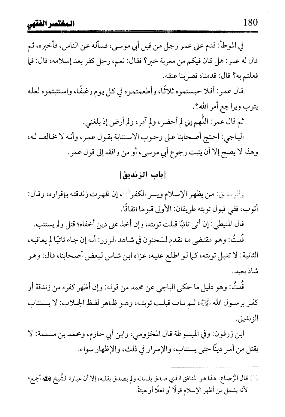 في "الموطأ": قدم على عمر رجل من قبل أبي موسى، فسأله عن الناس، فأخبره، ثم قال له عمر: هل كان فيكم من مغربة خبر؟ فقال: نعم، رجل كفر بعد إسلامه، قال: فما فعلتم به؟ قال: قدمناه فضربنا عنقه.