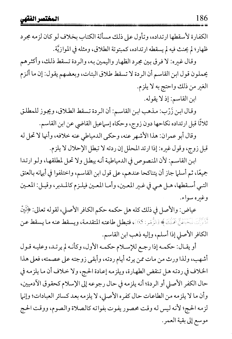 وقال غيره: لا فرق بين مجرد الظهار واليمين به، والردة تسقط ذلك، وأكثرهم يحملون قول ابن القاسم أن الردة لا تسقط طلاق البتات، وبعضهم يقول: إن ما ألزم الغير من ذلك واحتج به لا يلزم.
