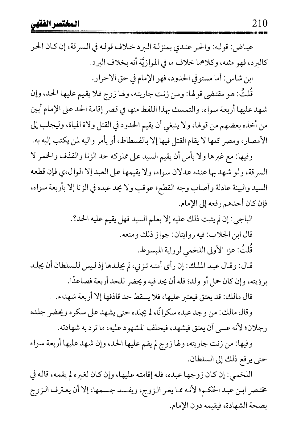 ابن شاس: أما مستوفي الحدود، فهو الإمام في حق الاحرار.