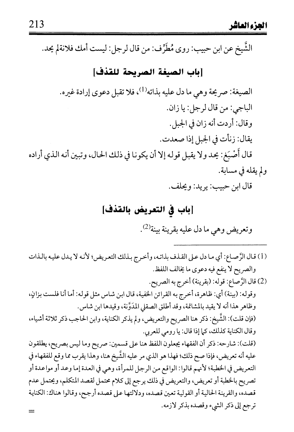 وتعريض وهي ما دل عليه بقرينة بينة.