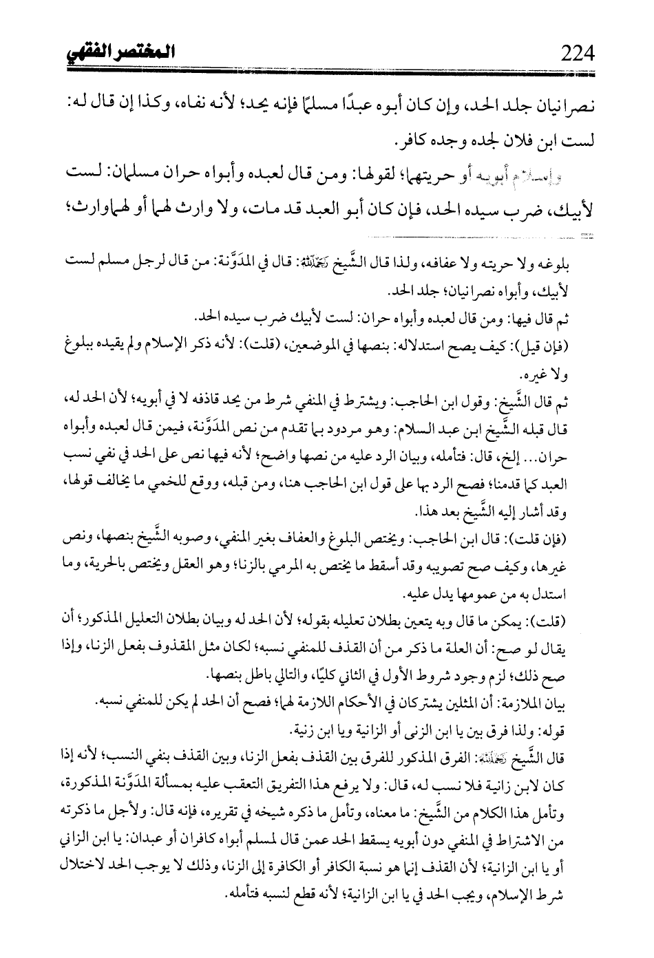 نصرانيان جلد الحد، وإن كان أبوه عبداً مسلماً فإنه يحد؛ لأنه نفاه، وكذا إن قال له: لست ابن فلان لجده وجده كافر.