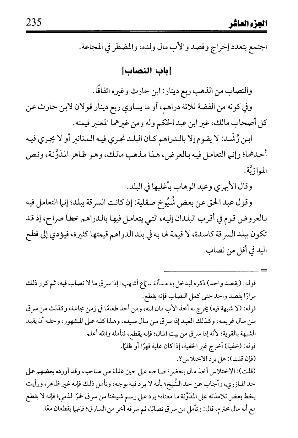 والنصاب من الذهب ربع دينار: ابن حارث وغيره اتفاقاً.