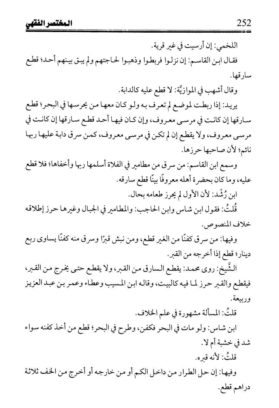 قلت: فقول ابن شاس وابن الحاجب: والمطامير في الجبال وغيرها حرز إطلاقه خلاف المنصوص.