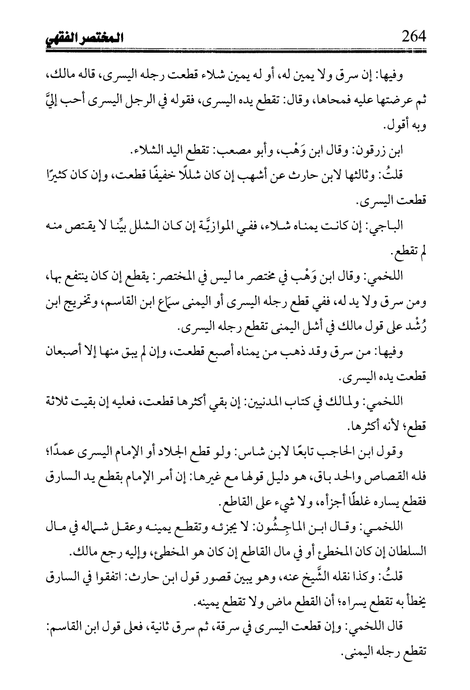قلت: وكذا نقله الشيخ عنه، وهو يبين قصور قول ابن الحارث: اتفقوا في السارق يخطأ به تقطع يسراه؛ أن القطع ماض ولا تقطع يمينه.