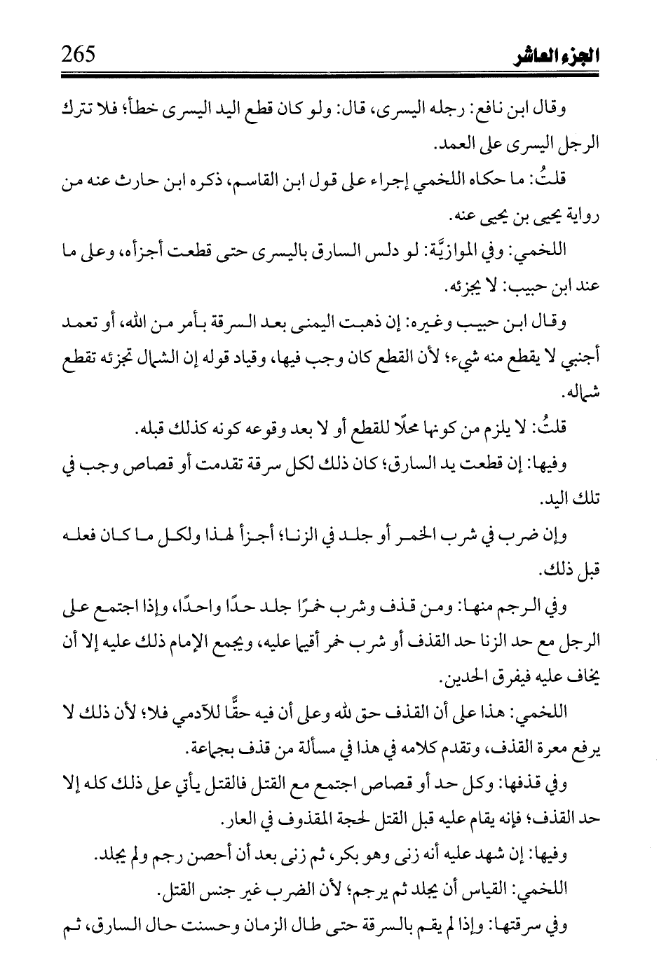 وفيها: إن قطعت يد السارق؛ كان ذلك لكل سرقة تقدمت أو قصاص وجب في تلك اليد.